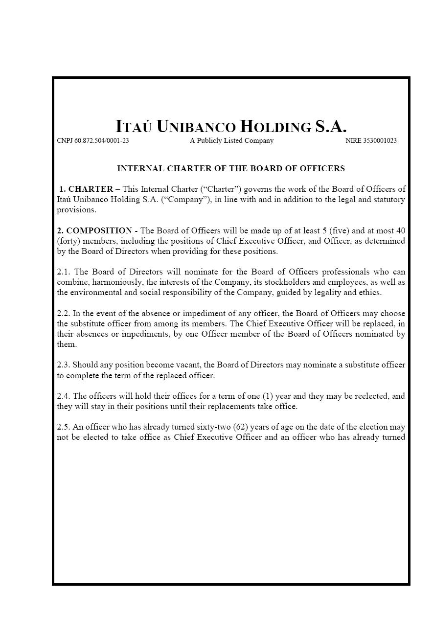 99.1    ITAÚ UNIBANCO - INTERNAL CHARTER OF THE BOARD OF OFFICERS