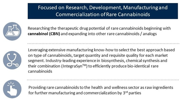 We are a clinical stage pharmaceutical company developing a pipeline of proprietary small molecule drug candidates that are preferential signaling ligands of the endogenous cannabinoid 1, or CB1, and cannabinoid 2, or CB2, receptors as well as other receptor targets linked to human disease. CB1 and CB2 receptors are each part of the endocannabinoid system that is found throughout the human body and is responsible for many homeostatic functions. CB1 receptors are primarily located in the brain and central nervous system, while CB2 receptors are involved in modulating neuroinflammation and immune responses. Our research efforts target the treatment of diseases with high unmet medical needs. Together with our wholly-owned subsidiary, BayMedica, we also have significant know-how in developing proprietary manufacturing approaches to produce and sell bulk rare cannabinoids as ingredients for various market sectors.
