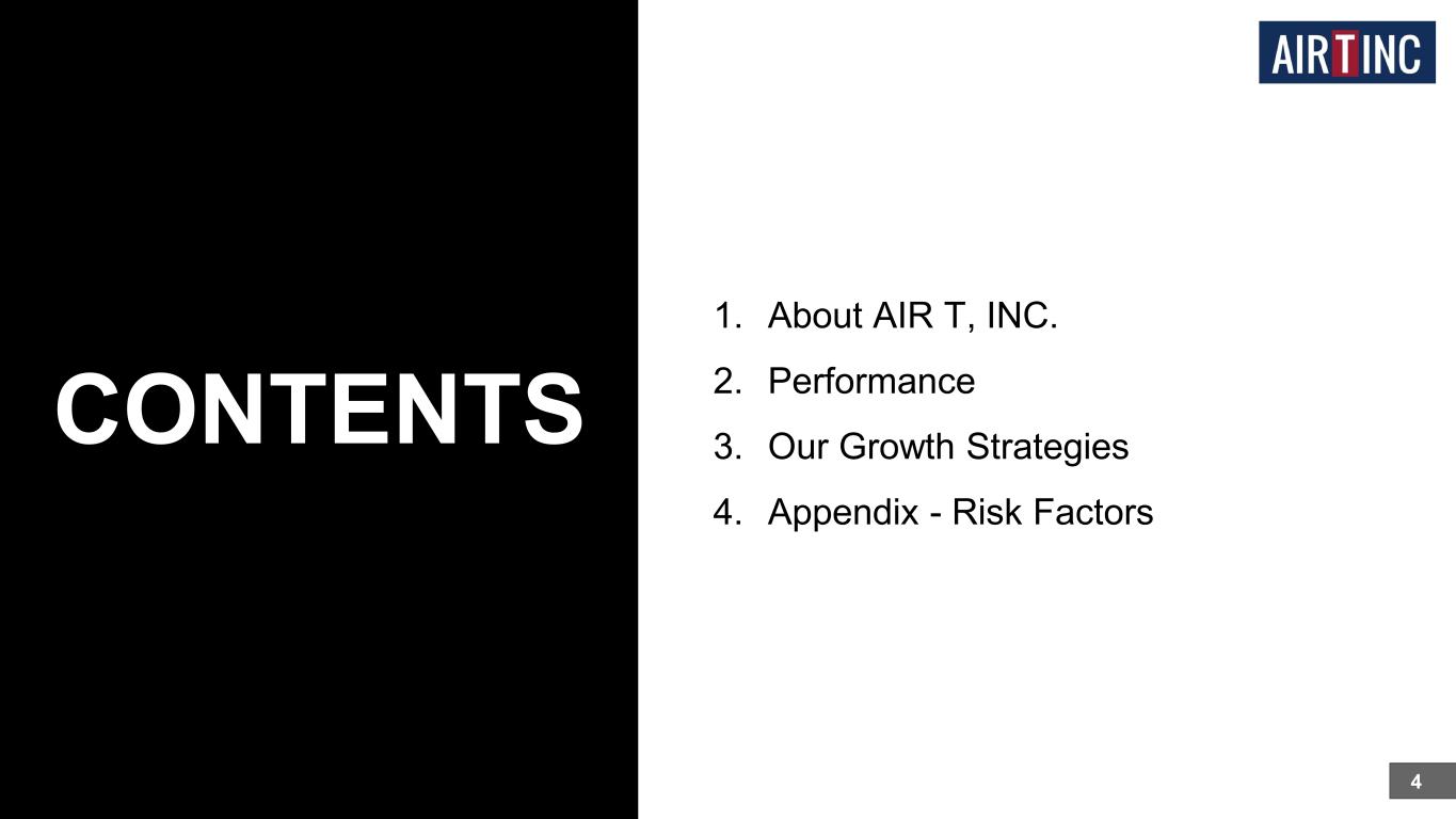 1. About AIR T, INC. 2. Performance 3. Our Growth Strategies 4. Appendix - Risk Factors 4 CONTENTS