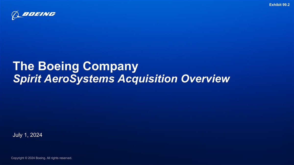 Exhibit 99.2 The Boeing Company Spirit AeroSystems Acquisition Overview July 1, 2024 Copyright © 2024 Boeing. All rights reserved.