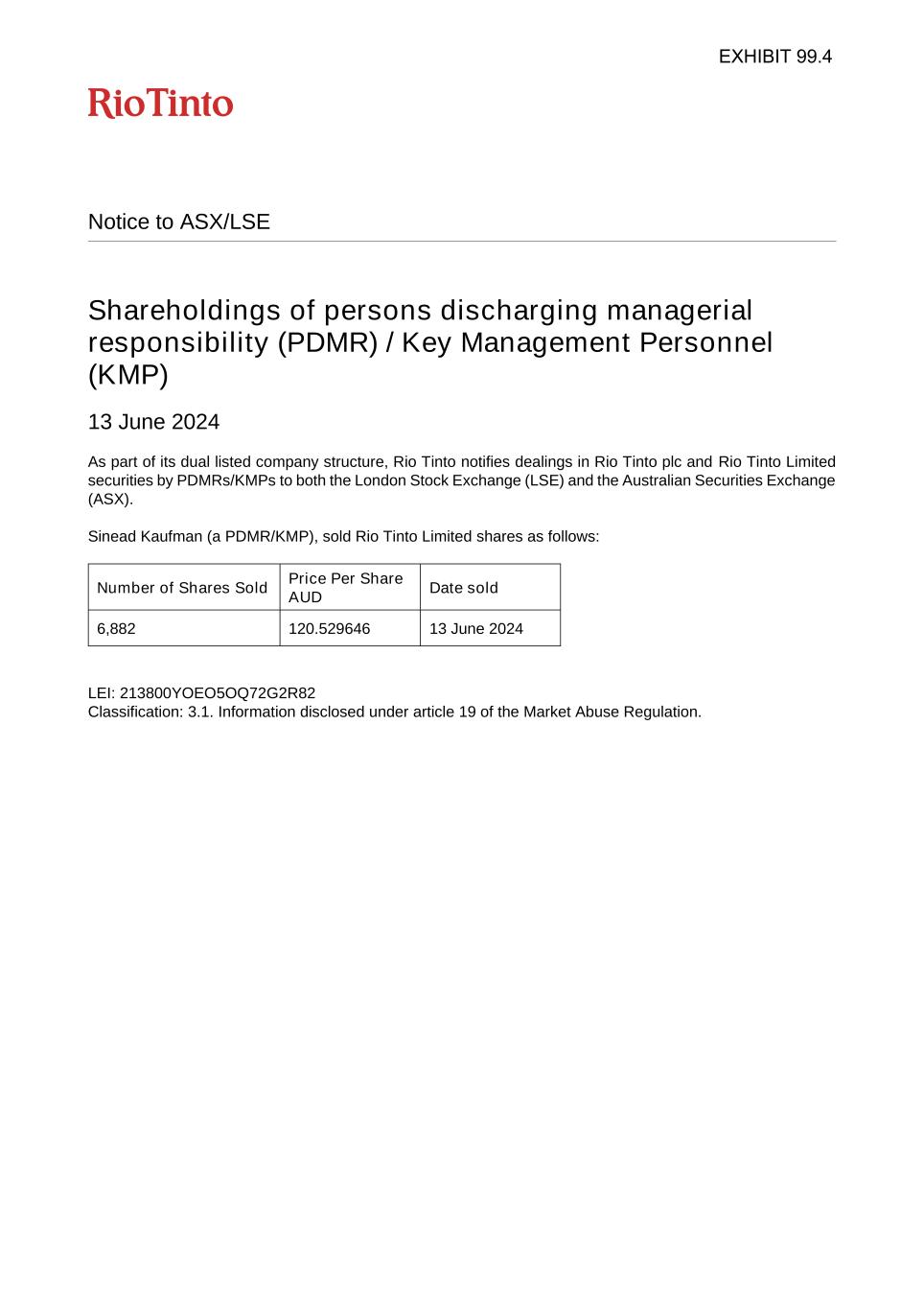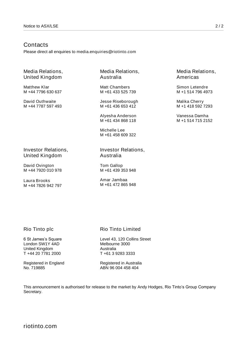 Rio Tinto plc | Rio Tinto Limited | ||