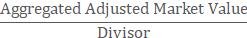 The SPX is calculated using a base-weighted aggregate methodology. The level of the SPX reflects the total market value of all component stocks relative to the base period of the years 1941 through 1943. An indexed number is used to represent the results of this calculation in order to make the level easier to work with and track over time. The actual total market value of the component stocks during the base period of the years 1941 through 1943 has been set to an indexed level of 10. This is often indicated by the notation 1941- 43 = 10. In practice, the daily calculation of the SPX is computed by dividing the total market value of the component stocks by the “index divisor.” By itself, the index divisor is an arbitrary number. However, in the context of the calculation of the SPX, it serves as a link to the original base period level of the SPX. The index divisor keeps the SPX comparable over time and is the manipulation point for all adjustments to the SPX, which is index maintenance.