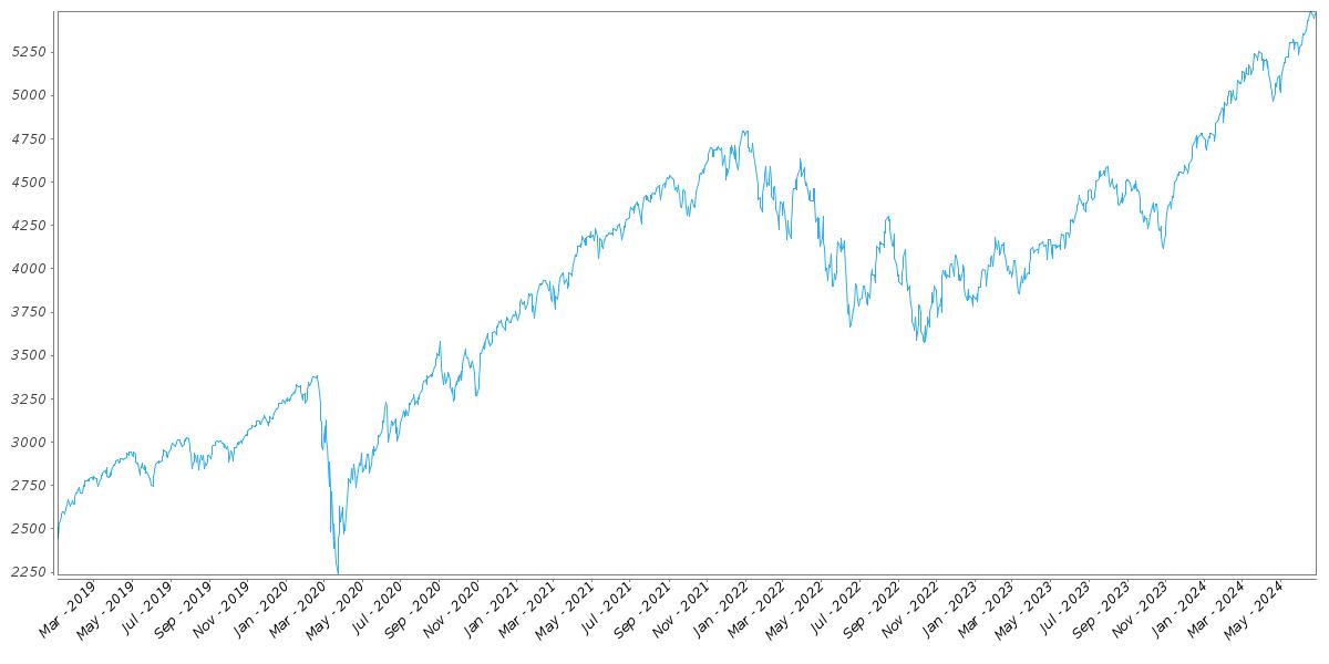 The following graph sets forth the daily historical performance of the SPX in the period from January 2, 2019 through the pricing date. We obtained this historical data from Bloomberg L.P. We have not independently verified the accuracy or completeness of the information obtained from Bloomberg L.P. On the pricing date, the closing level of the SPX was 5,477.90.