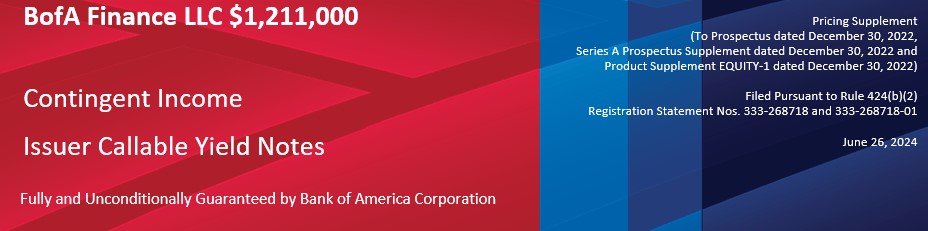 This pricing supplement and the accompanying product supplement, prospectus supplement and prospectus have been filed as part of a registration statement with the SEC, which may, without cost, be accessed on the SEC website at www.sec.gov or obtained from BofAS by calling 1-800-294-1322. Before you invest, you should read this pricing supplement and the accompanying product supplement, prospectus supplement and prospectus for information about us, BAC and this offering. Any prior or contemporaneous oral statements and any other written materials you may have received are superseded by this pricing supplement and the accompanying product supplement, prospectus supplement and prospectus. Certain terms used but not defined in this pricing supplement have the meanings set forth in the accompanying product supplement or prospectus supplement. Unless otherwise indicated or unless the context requires otherwise, all references in this document to “we,” “us,” “our,” or similar references are to BofA Finance, and not to BAC.