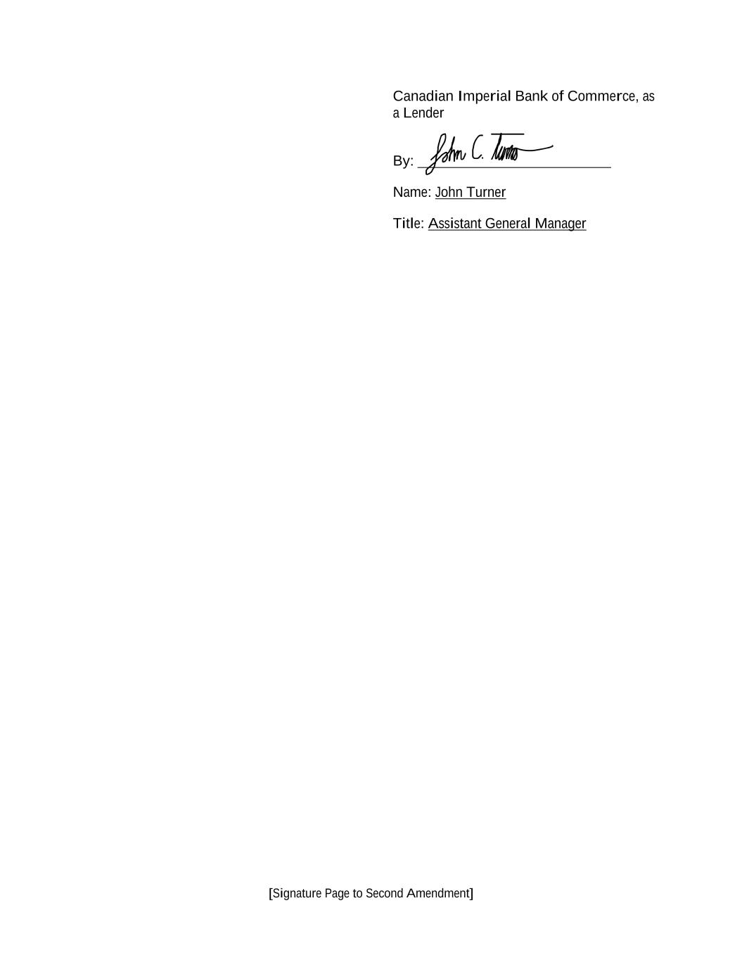 [Signature Page to Second Amendment] Canadian Imperial Bank of Commerce, as a Lender By: Name: John Turner Title: Assistant General Manager