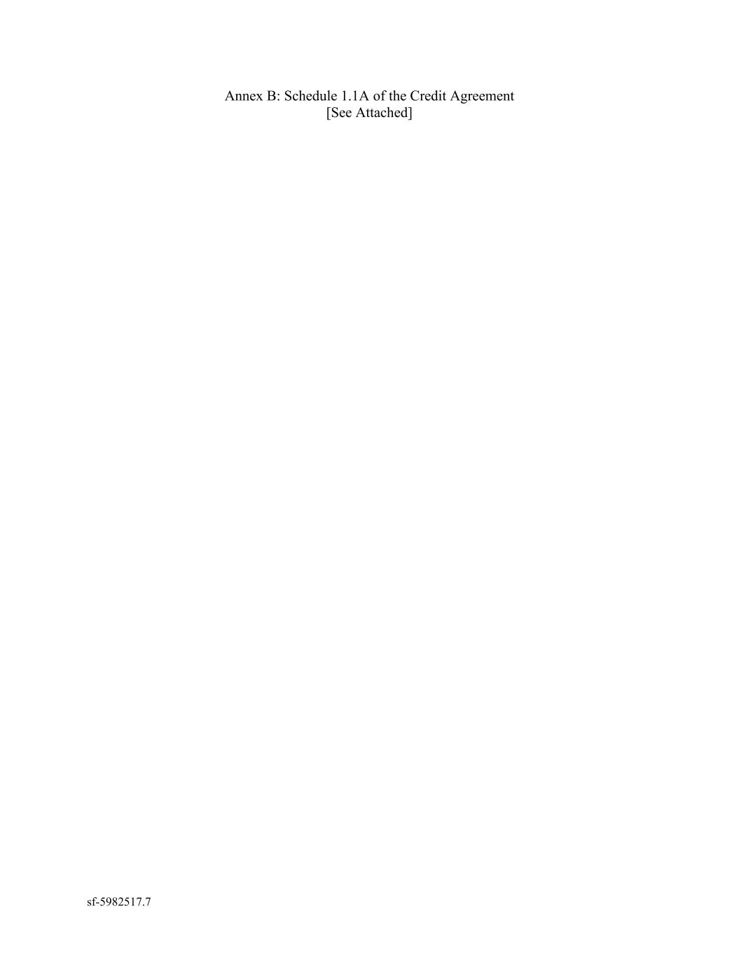 sf-5982517.7 Annex B: Schedule 1.1A of the Credit Agreement [See Attached]