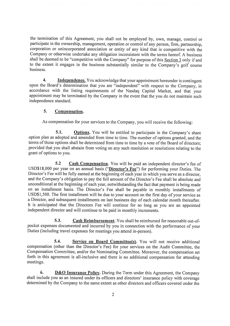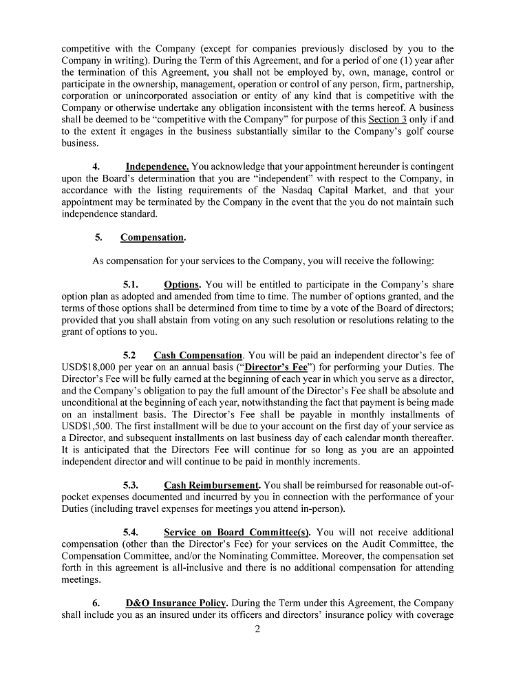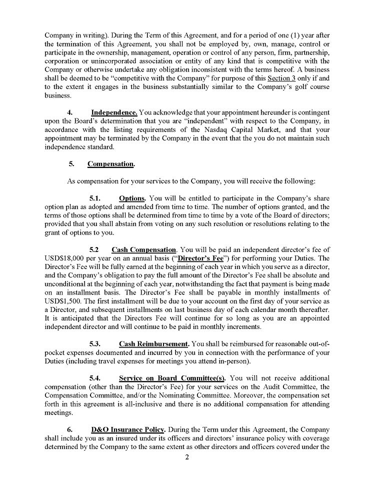 We entered into operating leases for corporate office, golf cars and golf equipment for terms of four to five years. Our commitments for minimum lease payment under these operating leases as of March 31, 2024 are listed in section “Note 8 — “Leases”.