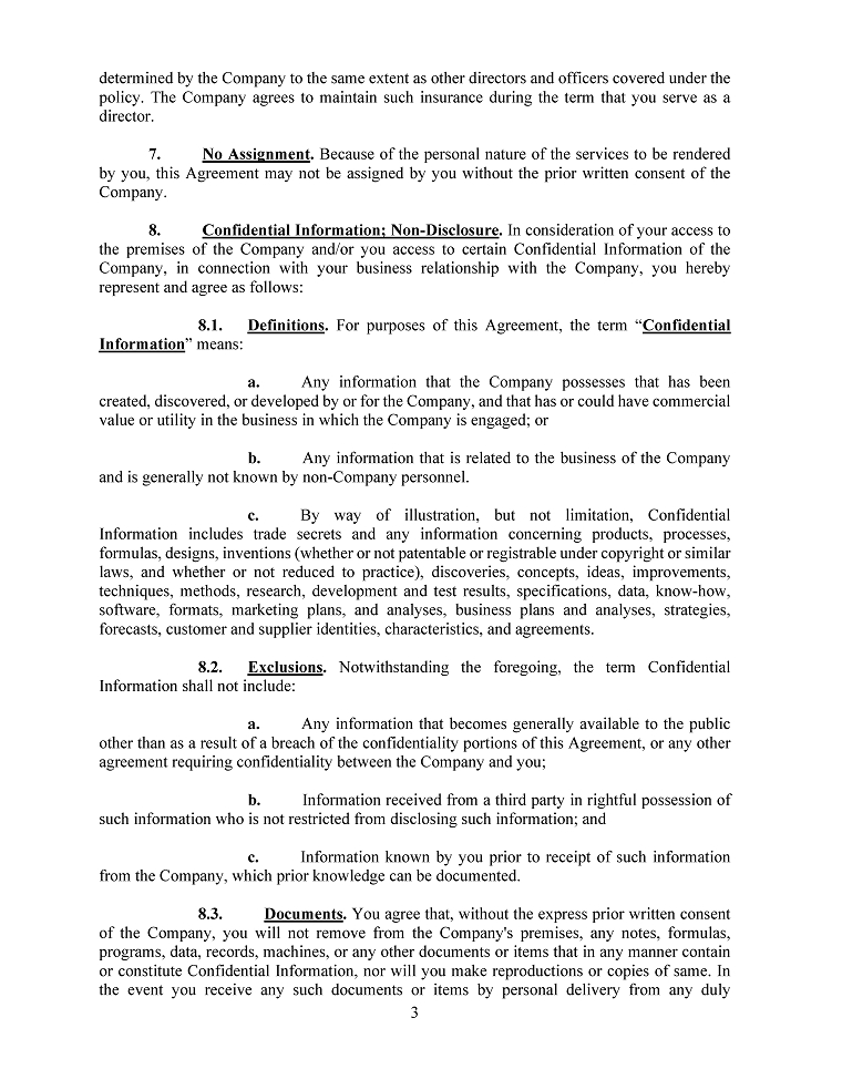 Discretionary indemnification pursuant to Section 78.7502 may be made as authorized upon determination that the indemnification is proper under the circumstances. Such determination may be made by (i) the stockholders; (ii) the board of directors by majority vote of a quorum consisting of directors who were not parties to the action, suit, or proceeding; or (iii) independent legal counsel if ordered by a majority of the quorum consisting of directors who were not parties to the action, suit, or proceeding or if a quorum of directors who were not parties to the action, suit, or proceeding cannot be obtained.