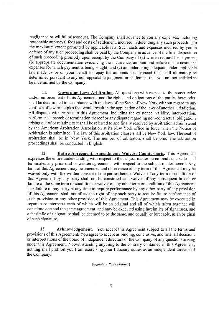 Insofar as indemnification for liabilities arising under the Securities Act may be permitted to directors, officers and controlling persons of the registrant pursuant to the provisions described in Item 14 above, or otherwise, the registrant has been advised that in the opinion of the United States Securities and Exchange Commission such indemnification is against public policy as expressed in the Securities Act and is therefore unenforceable. In the event that a claim for indemnification against such liabilities (other than the payment by the registrant of expenses incurred or paid by a director, officer or controlling person of the registrant in the successful defense of any action, suit or proceeding) is asserted by such director, officer or controlling person in connection with the securities being registered, the registrant will, unless in the opinion of its counsel the matter has been settled by controlling precedent, submit to a court of appropriate jurisdiction the question whether such indemnification by it is against public policy as expressed in the Securities Act and will be governed by the final adjudication of such issue.