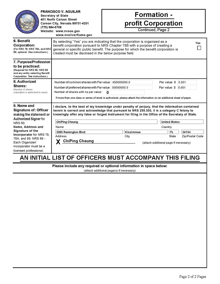 | ChiPing Cheung | (Principal Executive Officer) | |||