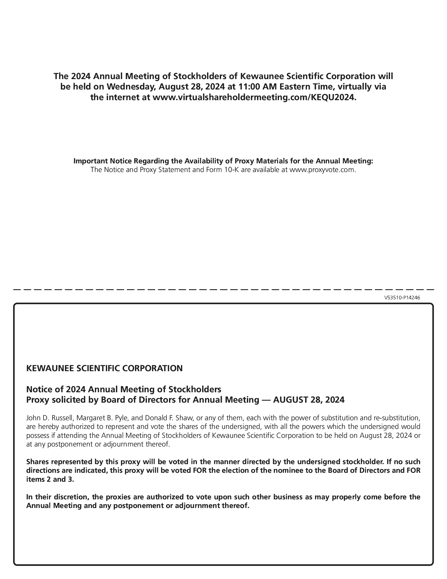 One Class II director is to be elected at the meeting. The Board of Directors, at its meeting on April 23, 2024, upon the recommendation of the Nominating and Corporate Governance Committee, selected Mr. Keith M. Gehl as the nominee for re-election as director at the annual meeting, to serve for a three-year term. The nominee is serving as a director as of the date of this Proxy Statement. The nominee receiving the greatest number of votes at the annual meeting will be elected director. Unless a stockholder indicates otherwise on the proxy card and the proxy card is validly executed and returned, the stockholder’s shares will be voted for the election of the nominee named below. If due to circumstances not now foreseen, the nominee becomes unavailable for election, the proxies will be voted for such other person or persons as the Board of Directors may select, or the Board will make an appropriate reduction in the number of directors to be elected.