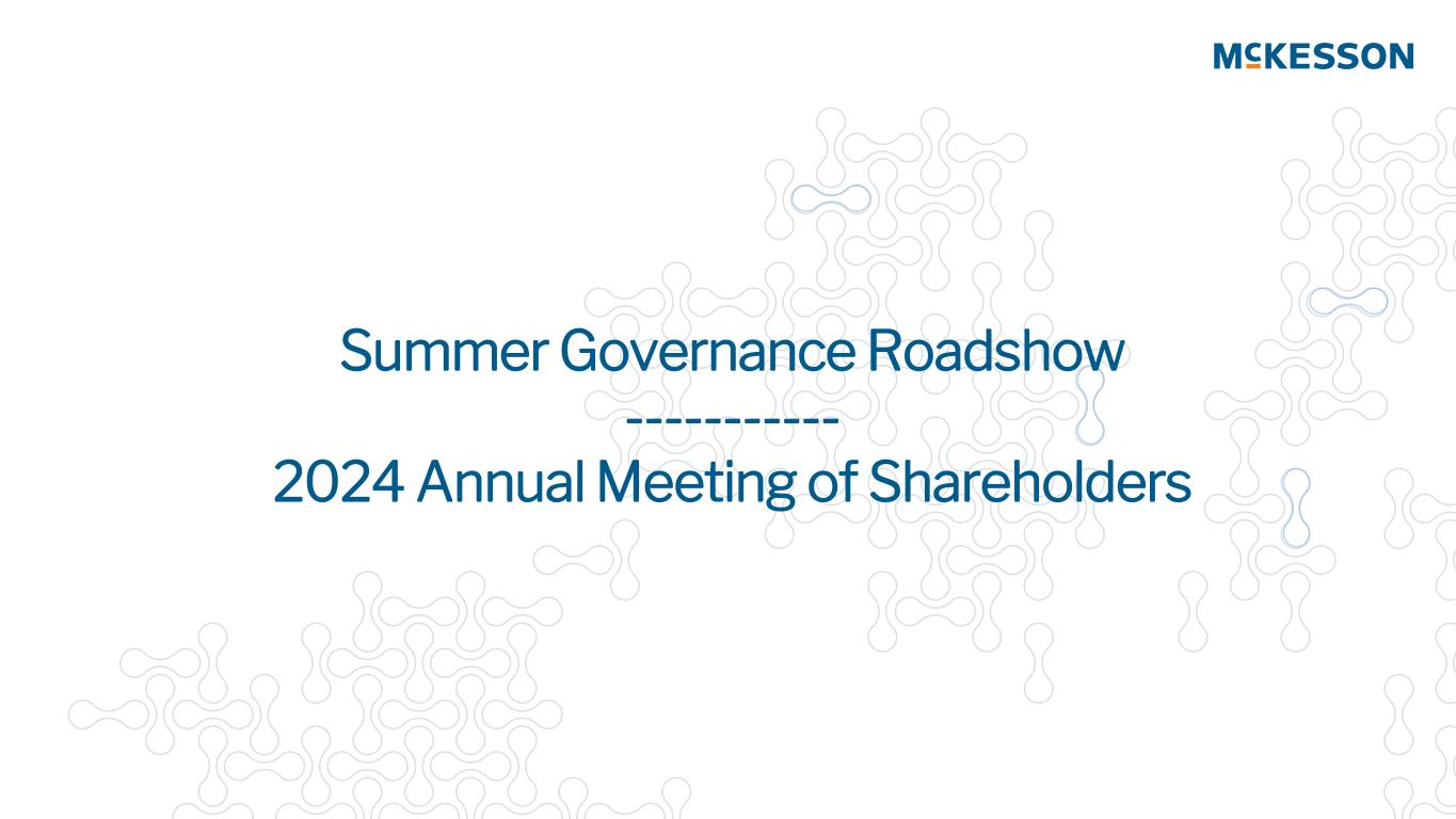 Summer Governance Roadshow ----------- 2024 Annual Meeting of Shareholders