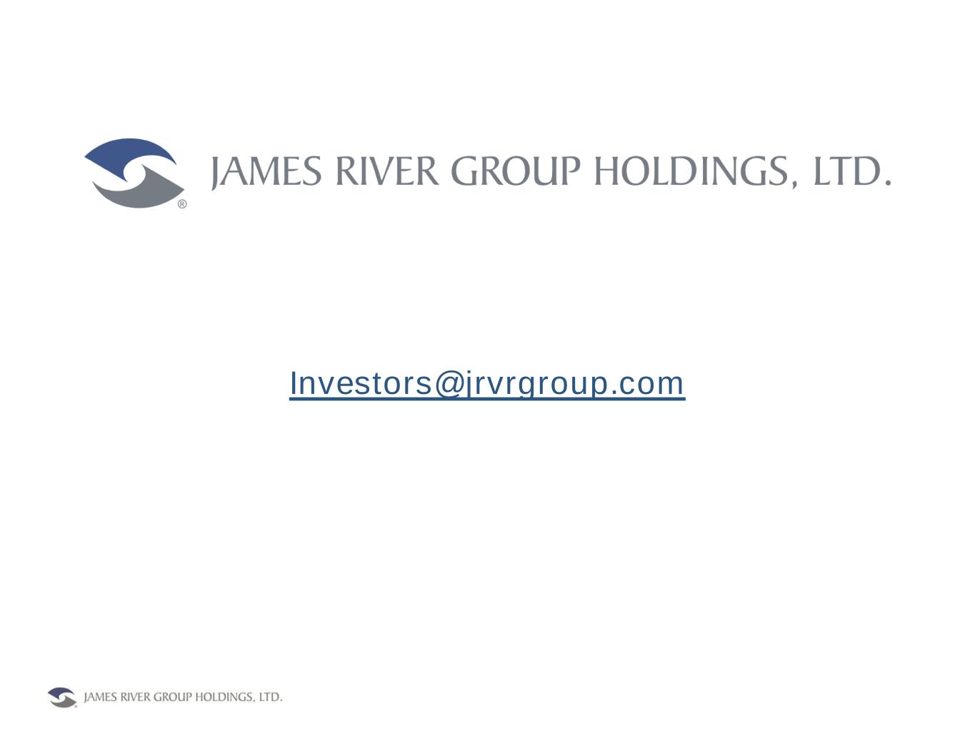 James River Group Holdings, Ltd. is a Bermuda-based insurance holding company that owns and operates a group of specialty insurance companies. The Company operates in two specialty property-casualty insurance segments: Excess and Surplus Lines and Specialty Admitted Insurance. Each of the Company’s regulated insurance subsidiaries are rated “A-” (Excellent) by A.M. Best Company. Visit James River Group Holdings, Ltd. on the web at www.jrvrgroup.com.