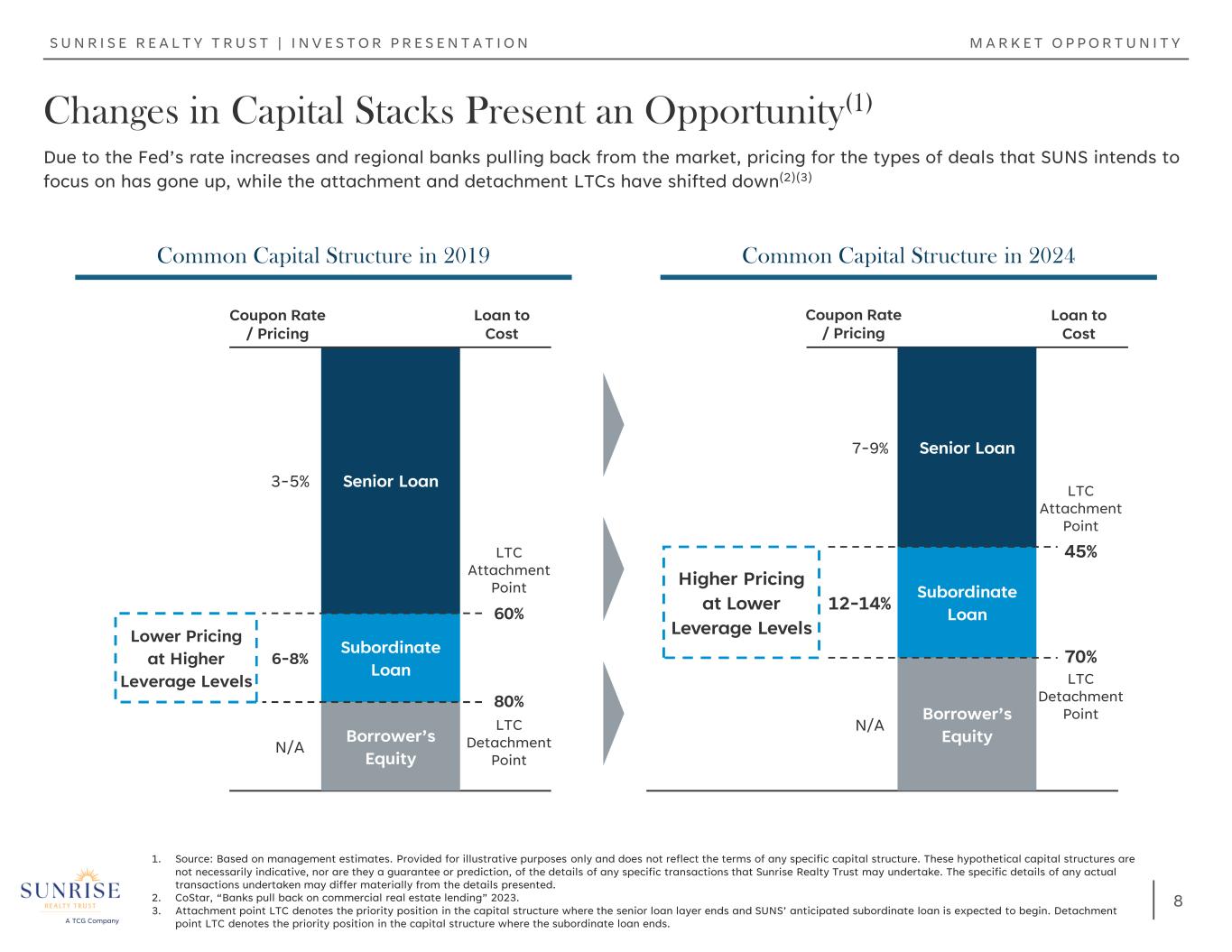 7 A TCG Company Broad Economic Drivers Population & Employment Migration Right Time, Right Place Why CRE Debt Today Rising Rates & Inflation Portfolio Issues Growth Across Diverse SectorsRegulatory Forces Low Existing Supply of CRERegional Bank Failures COVID accelerated pre-existing population and employment migration trends to Southern U.S. The dual increase in both construction and borrowing costs squeezes CRE investors across the capital stack The business environment, climate and talent pool are among the factors driving corporations south Lenders dealing with legacy assets have neither the time nor capital to fund new transitional business plans Manufacturing ‘reshoring’ and a shift to value-added sectors further improve the region’s growth prospects Structural regulatory backdrop further reduces the incentives for banks to lend to transitional real estate Office and industrial capacity per capita in the Southern U.S. has lagged national averages(1) Silicon Valley Bank and Signature Bank’s collapse have increased the pressure facing other banks to tighten credit conditions Sunrise Realty Trust is pursuing an immediately actionable opportunity with a targeted geographical focus M A R K E T O P P O R T U N I T YS U N R I S E R E A L T Y T R U S T | I N V E S T O R P R E S E N T A T I O N Why the Southern U.S. 1. Co-Star Market Data.