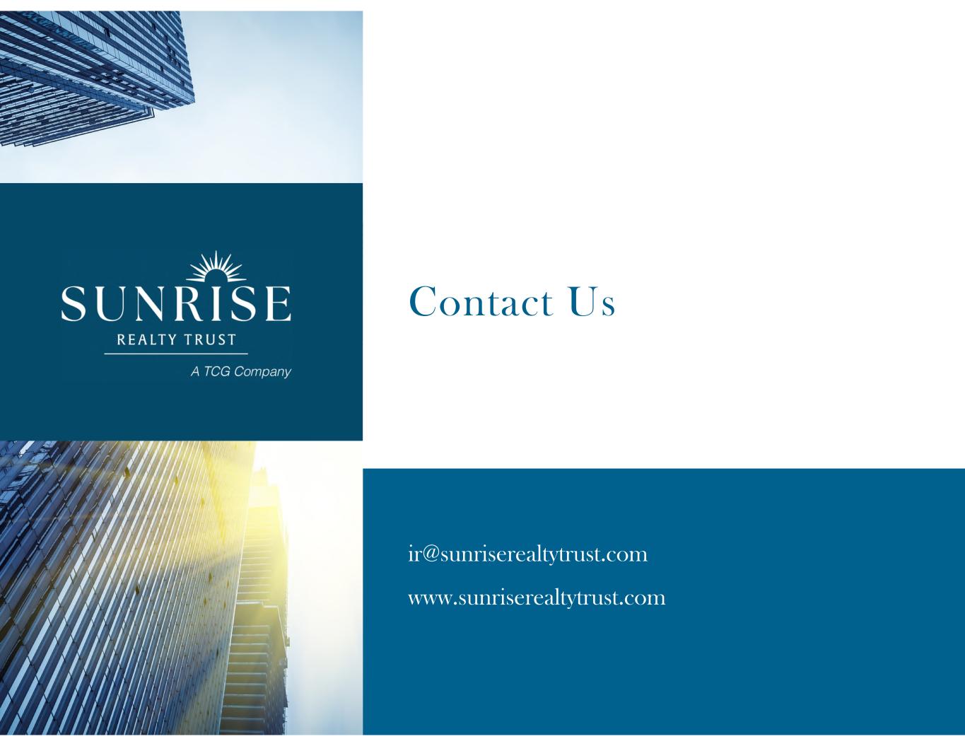 Contact Us ir@sunriserealtytrust.com www.sunriserealtytrust.com