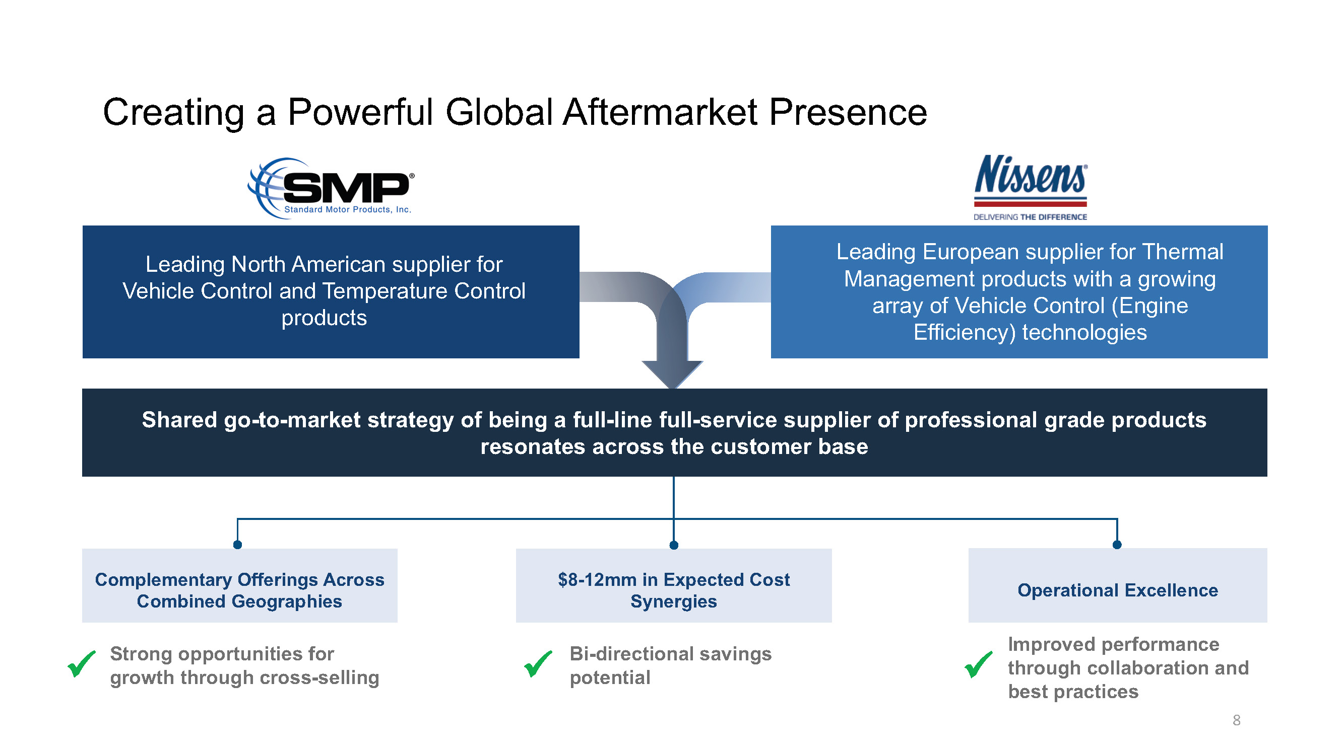 Creates a global leader for aftermarket parts supply with a comprehensive product offering across vehicle control and