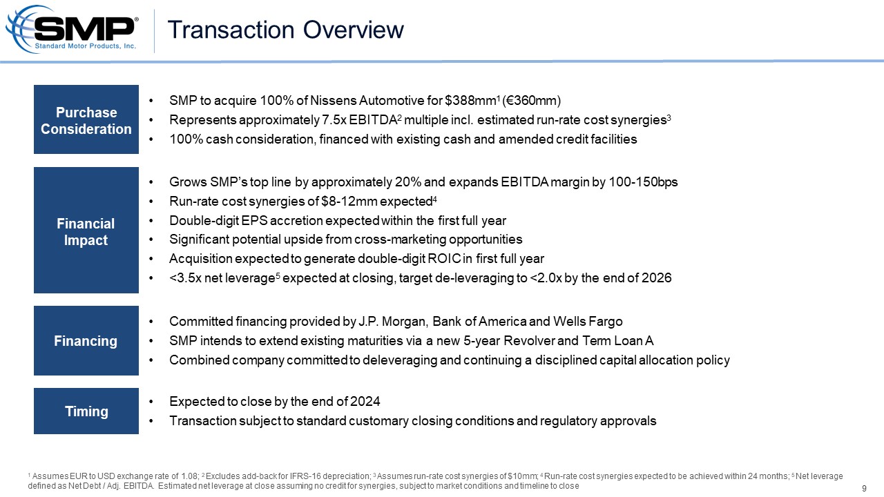 Press release, dated July 10, 2024, announcing the acquisition of Nissens Automotive by Standard Motor Products, Inc.