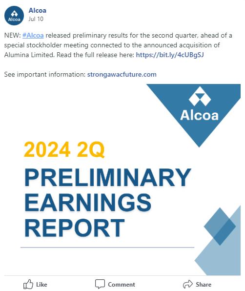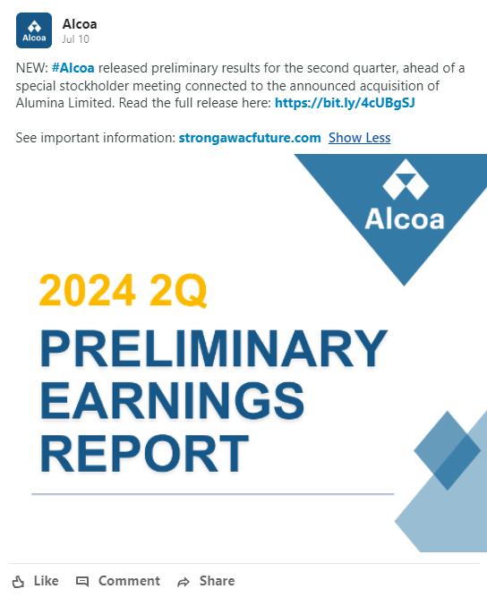 Item 2: On July 10, 2024, Alcoa published a message on Meta, which is filed herewith as Exhibit 2.