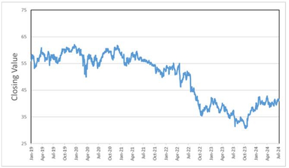 The following graph sets forth the historical performance of the common stock of Altria Group, Inc. based on the daily historical closing values from January 1, 2019 through July 10, 2024. We obtained the closing values below from Bloomberg L.P. (“Bloomberg”). We have not undertaken any independent review of, or made any due diligence inquiry with respect to, the information obtained from Bloomberg.
