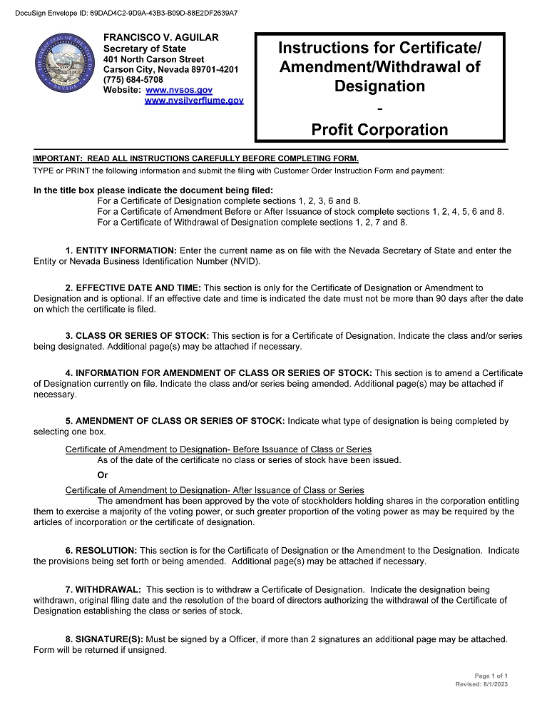 | /s/ Stephen ChiPing Cheung | Designated Director and Chairman of the Board of Directors | July 12, 2024 | ||