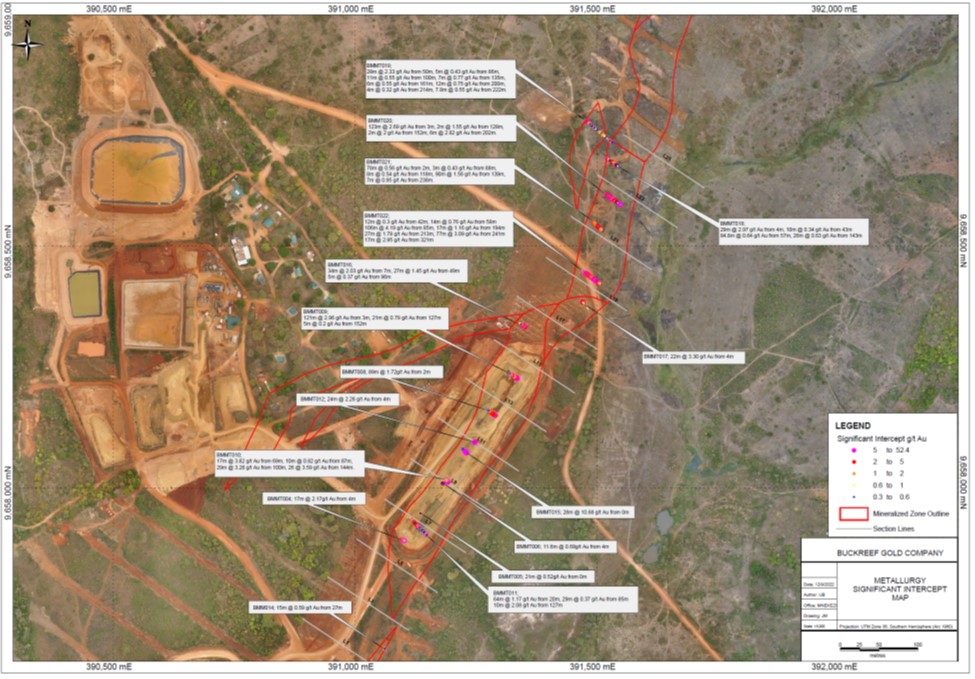 The results summarized in this MD&A are from Buckreef Main Zone NEE prospect. The prospect is an extension of the known Buckreef Main Zone. The intercepts confirm a continuity of over 200 m of known Buckreef main deposit to the North east. The intersections reported here are a down-hole length and may not represent true width, however the true width is estimated to be between 50% - 60% of the length.