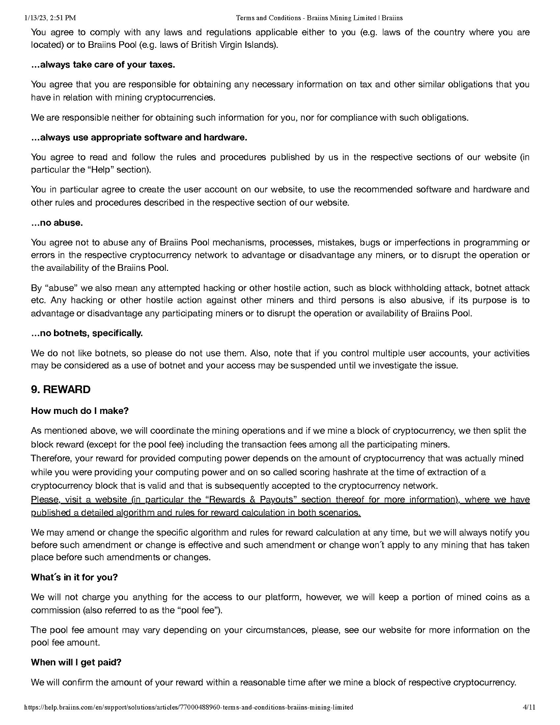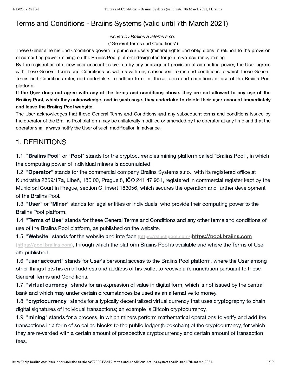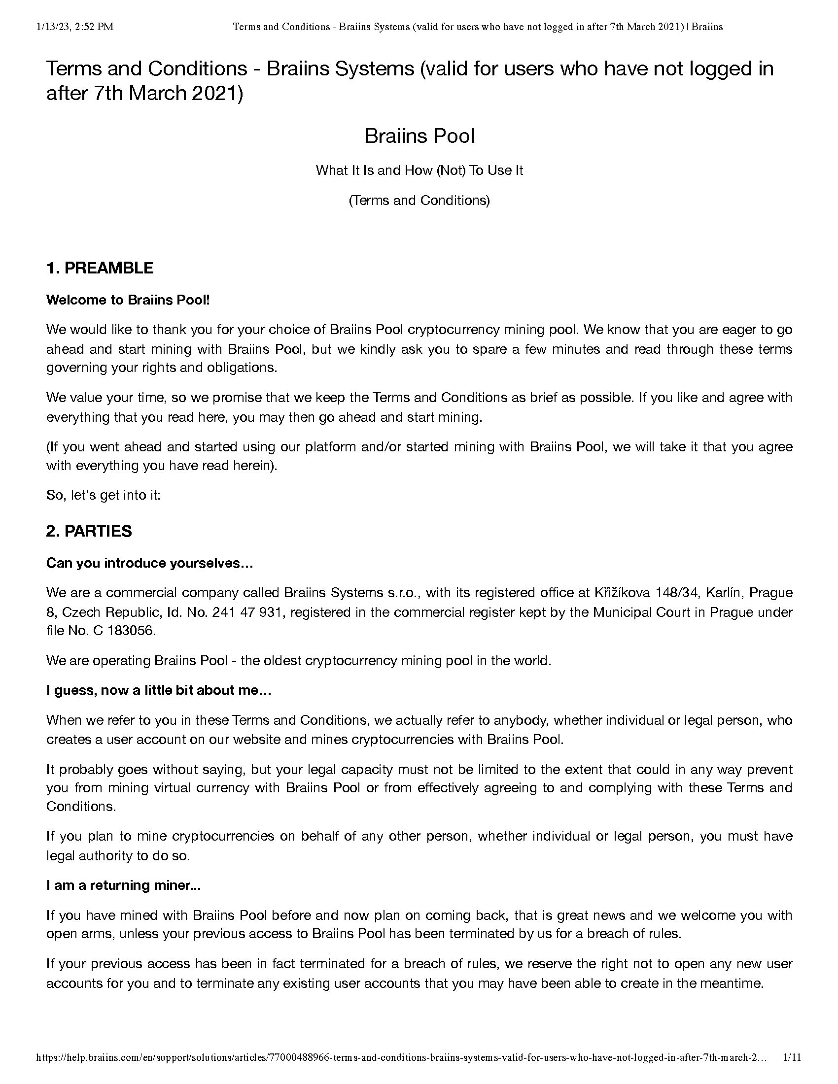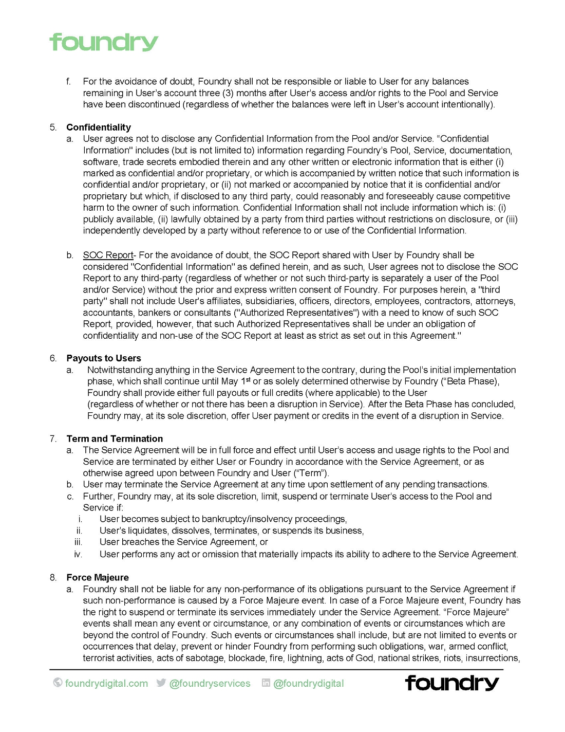 Pursuant to our call today, attached please find the various “boilerplate” terms and conditions for both the Braiins and Foundry Pools. We will attach all of these as exhibits to our next subsequent filing and describe any material terms therein.