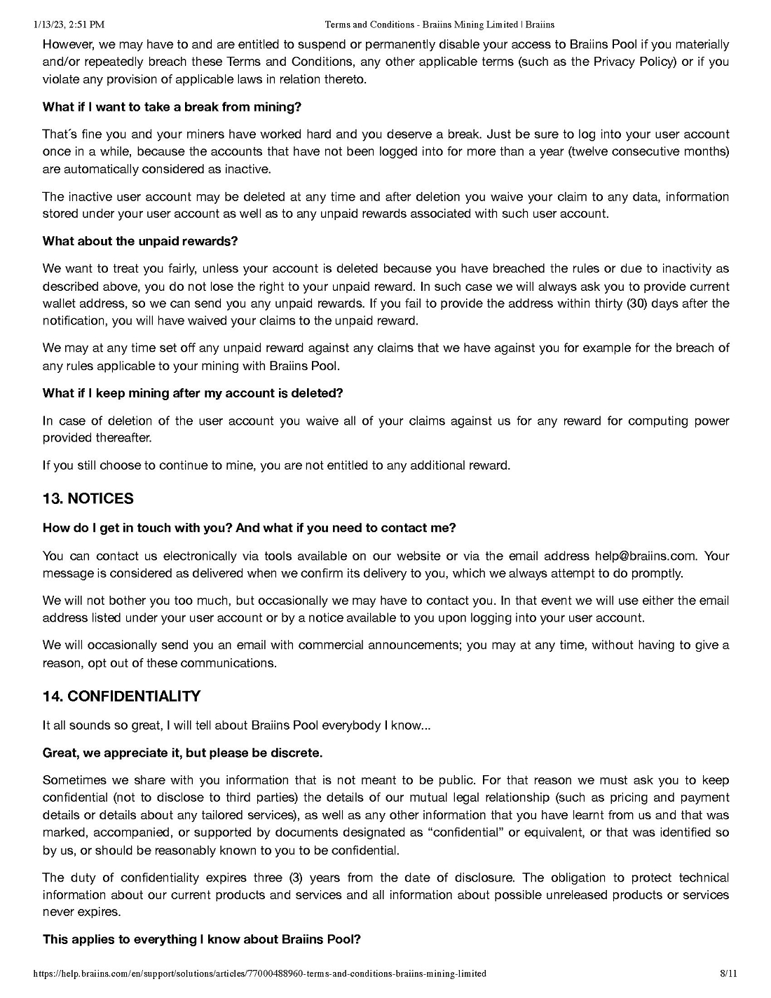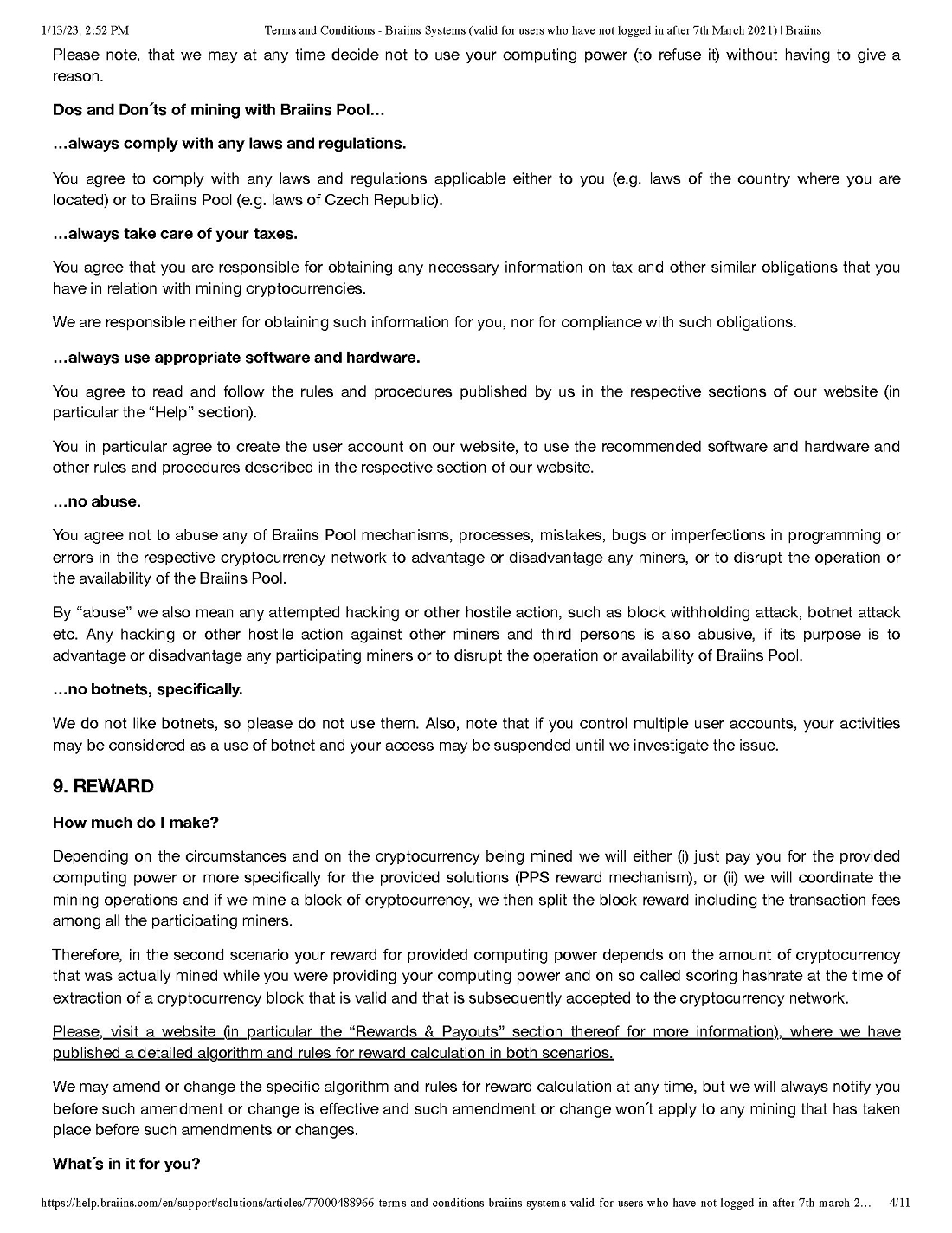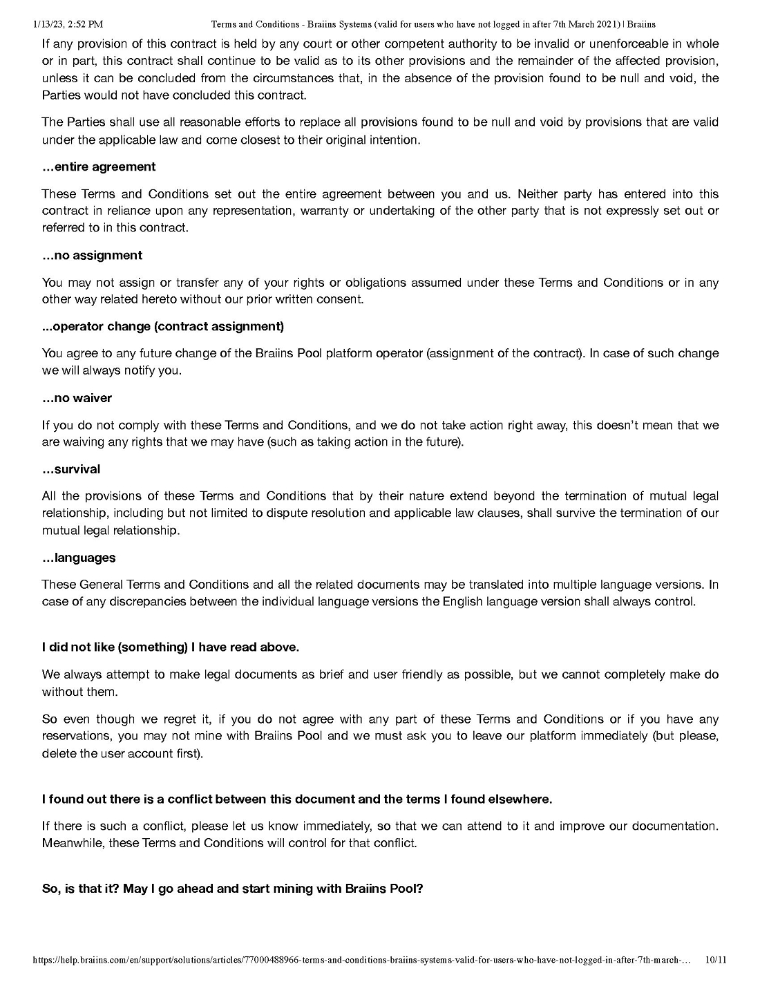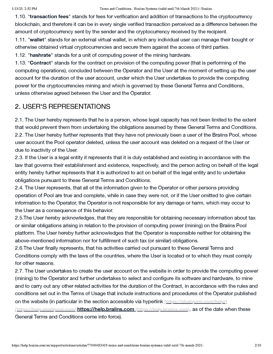 Pursuant to our call today, attached please find the various “boilerplate” terms and conditions for both the Braiins and Foundry Pools. We will attach all of these as exhibits to our next subsequent filing and describe any material terms therein.