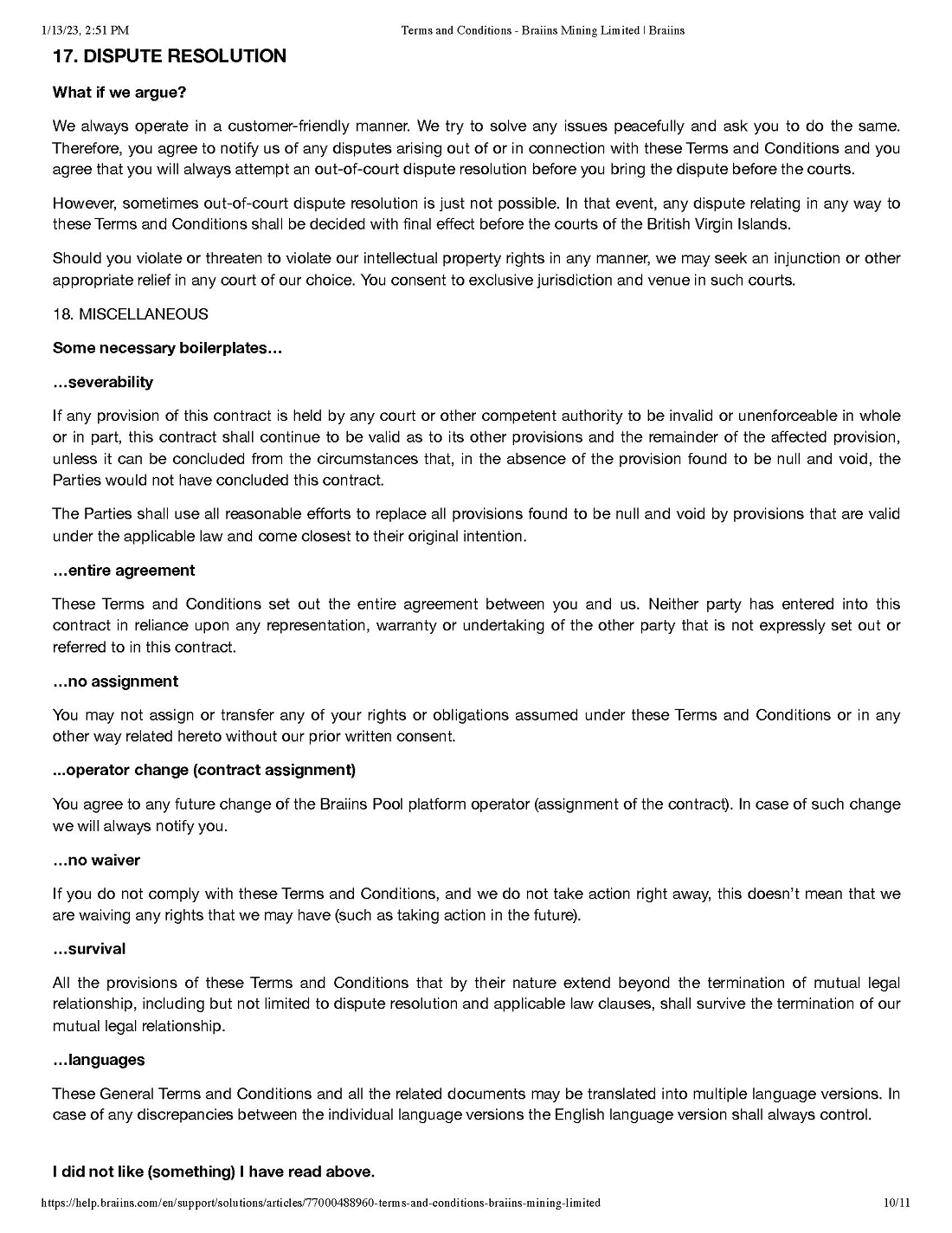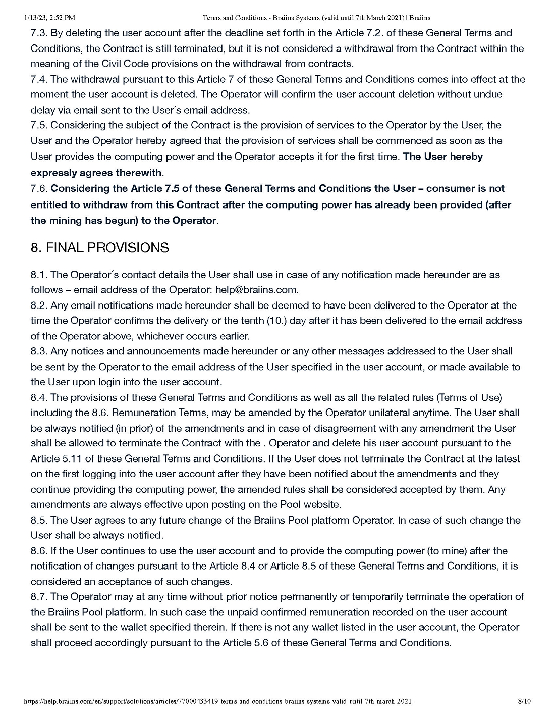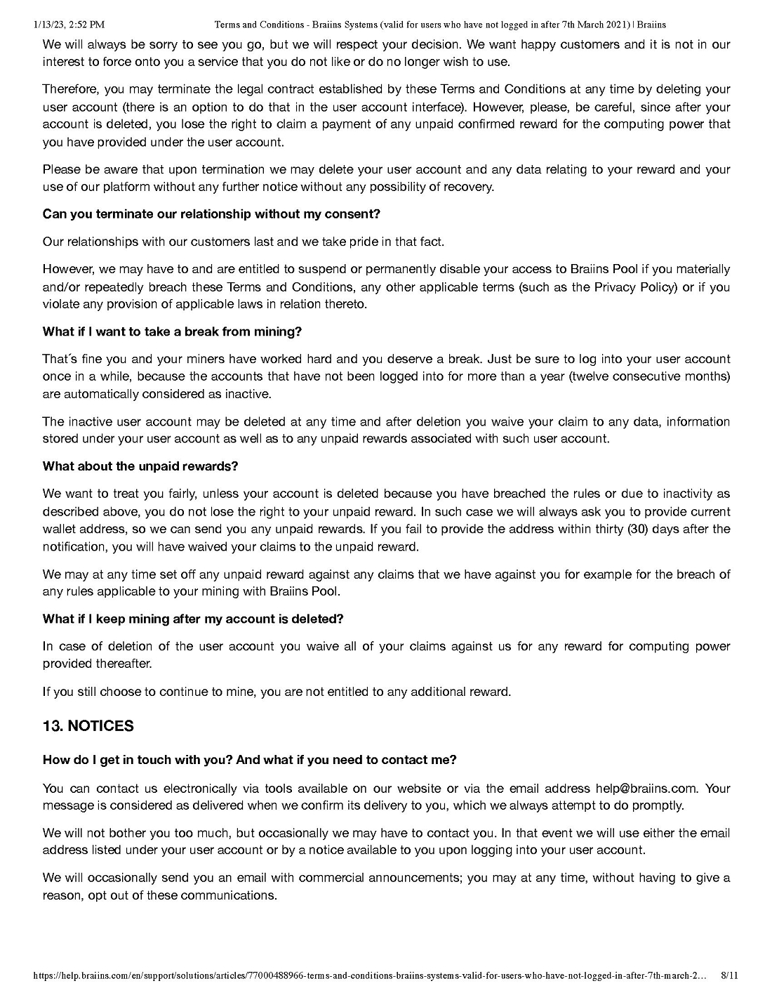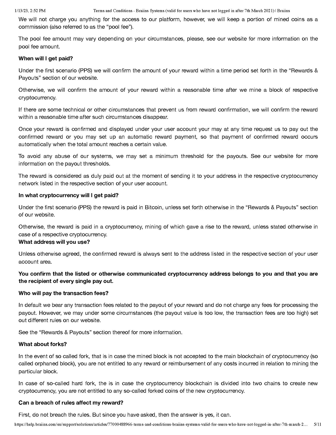 Pursuant to our call today, attached please find the various “boilerplate” terms and conditions for both the Braiins and Foundry Pools. We will attach all of these as exhibits to our next subsequent filing and describe any material terms therein.