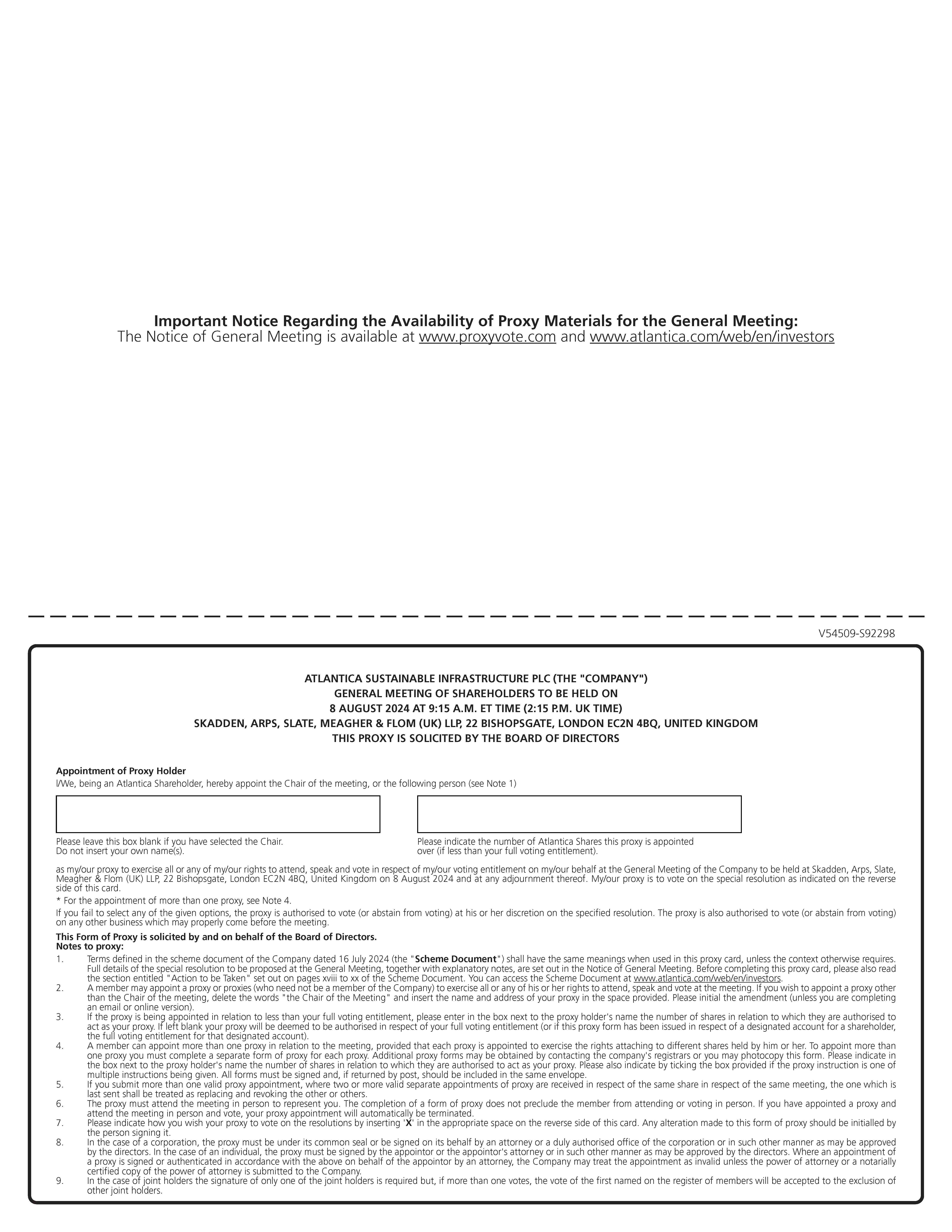 ATLANTICA SUSTAINABLE INFRASTRUCTURE PLC