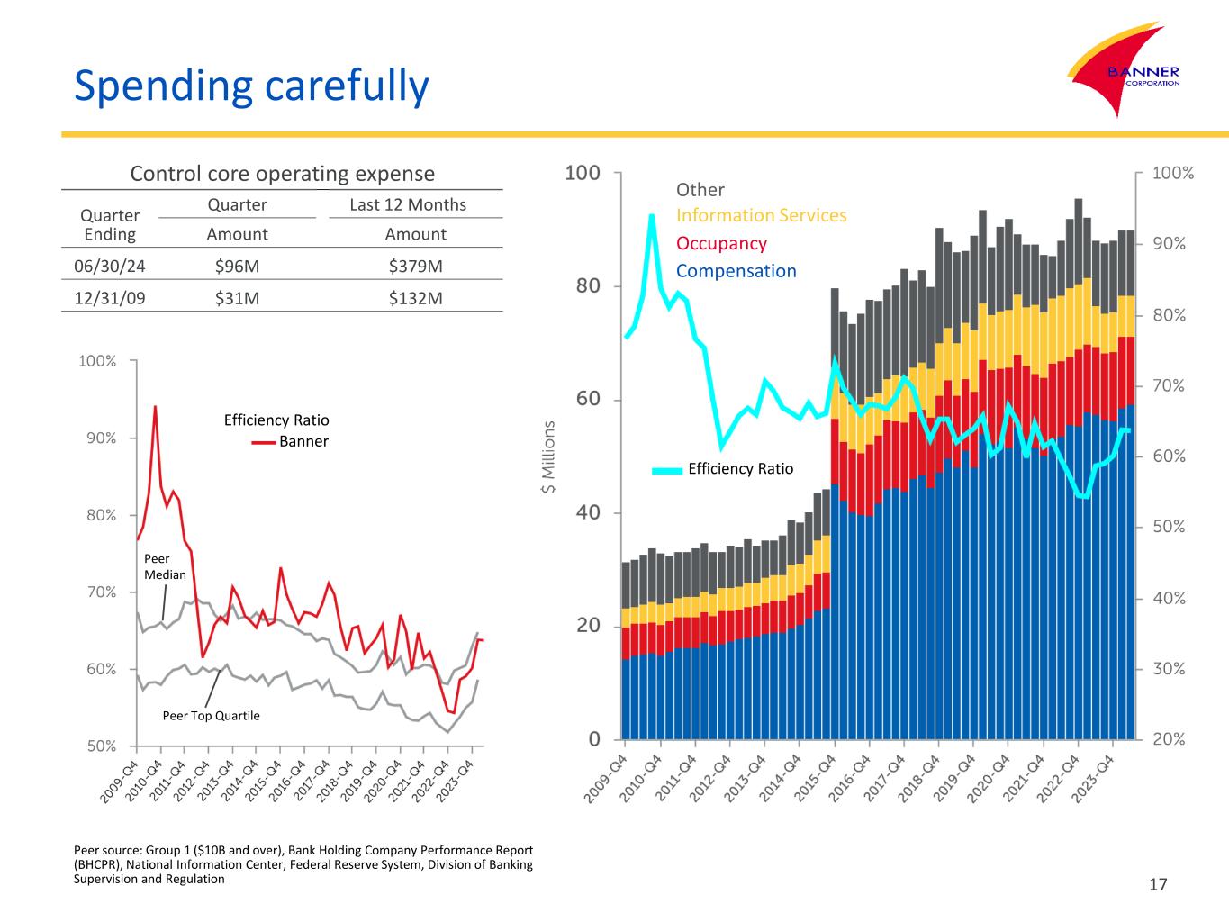 Building value at Banner Core banking competency Growing revenue Protecting net interest margin Spending carefully Maintaining a moderate risk profile Employing capital wisely Spending carefully Benefit from scale Control core operating expense 16