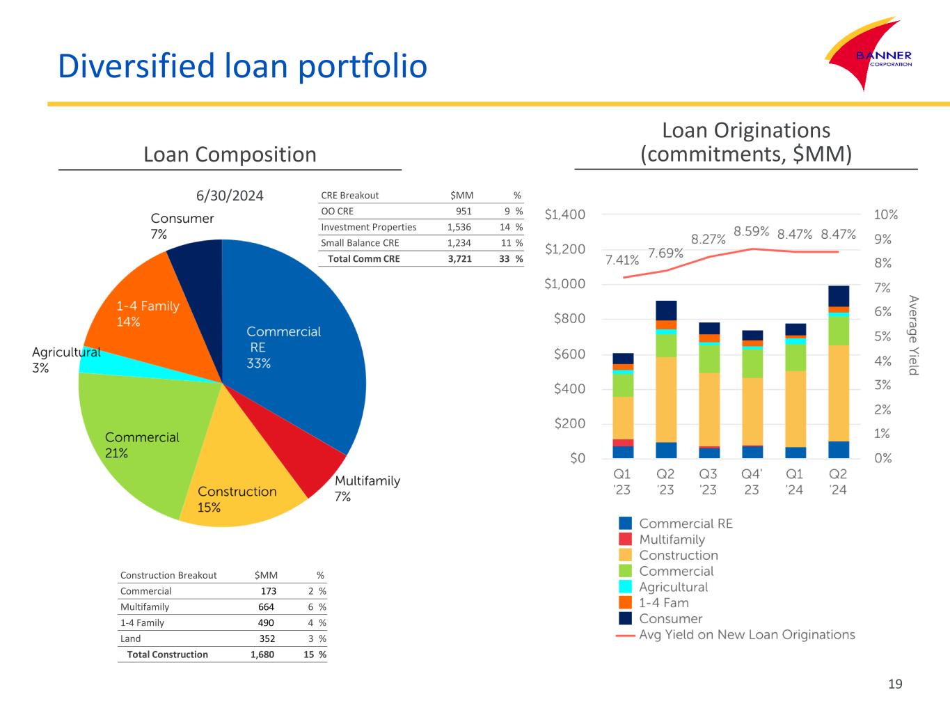 “Banner’s second quarter operating results reflect the continued successful execution of our super community bank strategy, which emphasizes strong relationship banking and a moderate risk profile,” said Mark Grescovich, President and CEO. “Our earnings for the second quarter of 2024 benefited from solid growth in loans and higher yields on interest-earning assets. The continued high interest rate environment and its effect on funding costs, however, resulted in moderate compression in our net interest margin during the quarter. We continue to maintain strong credit quality metrics and a solid reserve for potential credit losses. Additionally, we continue to benefit from a strong core deposit base that has been resilient in a highly competitive environment, with core deposits representing 88% of total deposits at quarter end. Banner has upheld its core values for the past 133 years, which are to do the right thing for our clients, communities, colleagues, company and shareholders; and to provide consistent and reliable strength through all economic cycles and change events.”