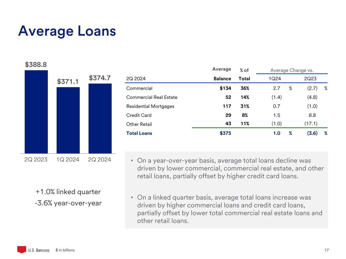 | Average total loans | $374,685 | | $371,070 | | $388,817 | | | | |