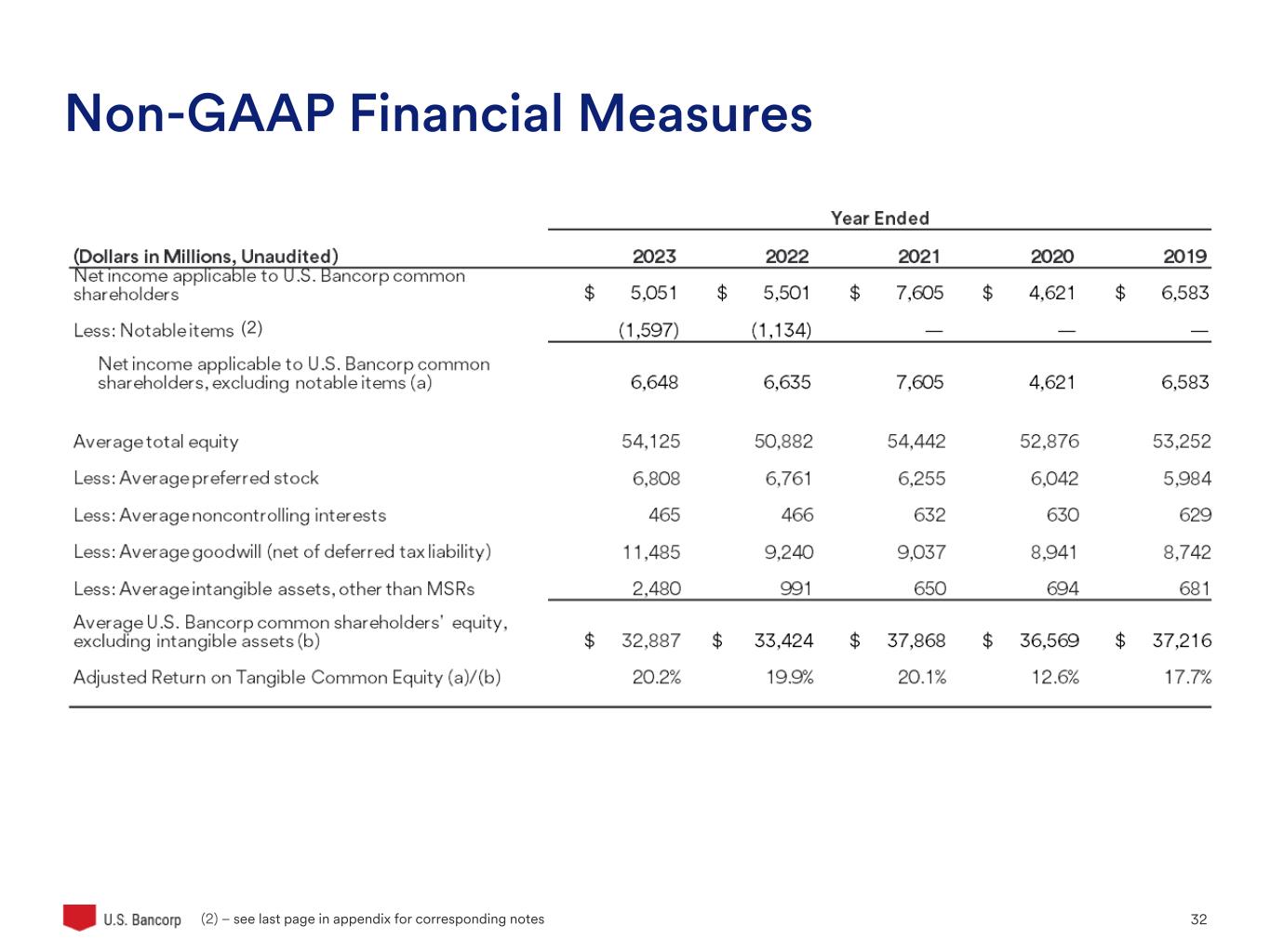 U.S. Bancorp 32 Non-GAAP Financial Measures (2) – see last page in appendix for corresponding notes (2)