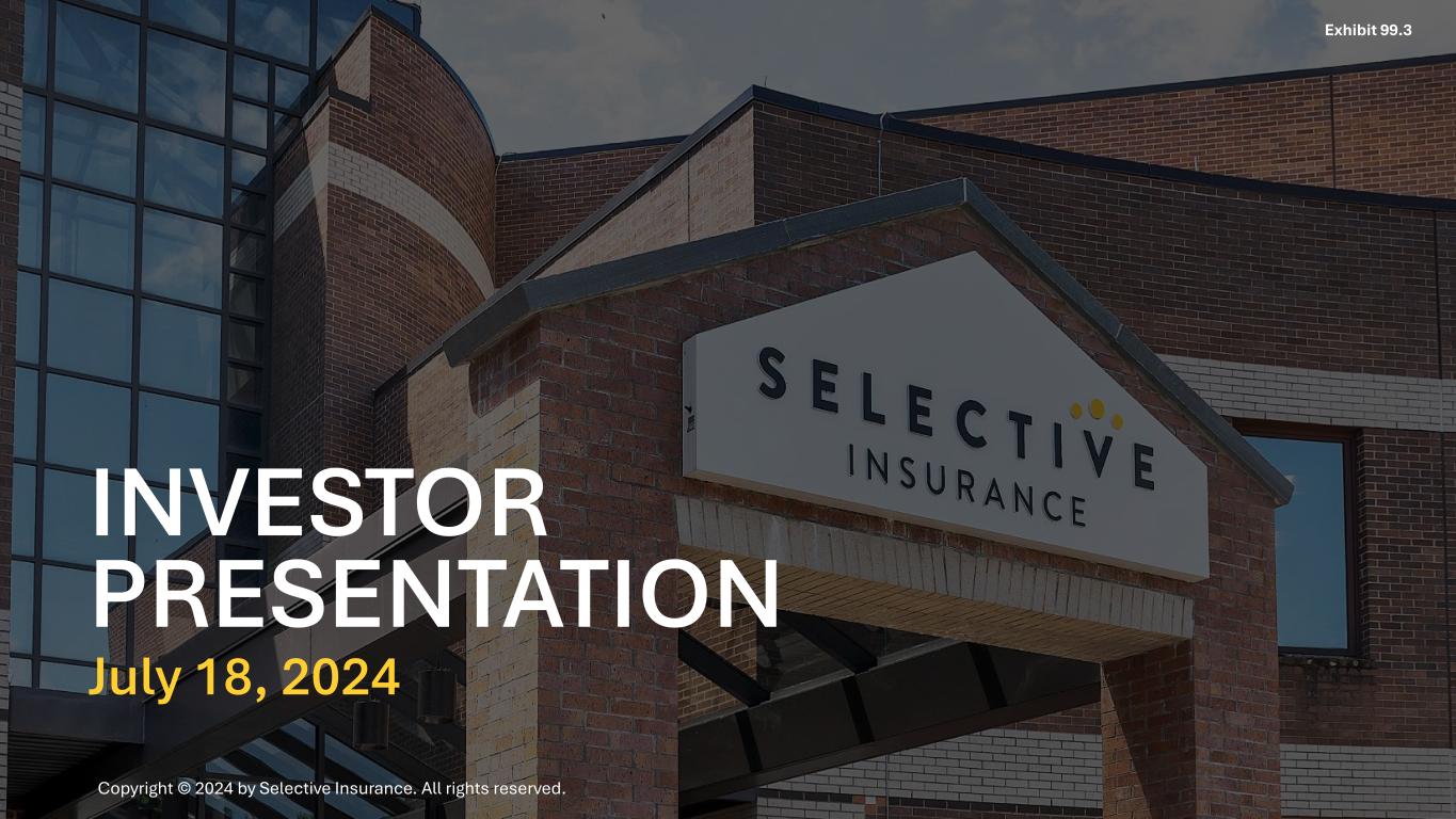 INVESTOR PRESENTATION July 18, 2024 Copyright © 2024 by Selective Insurance. All rights reserved. Exhibit 99.3