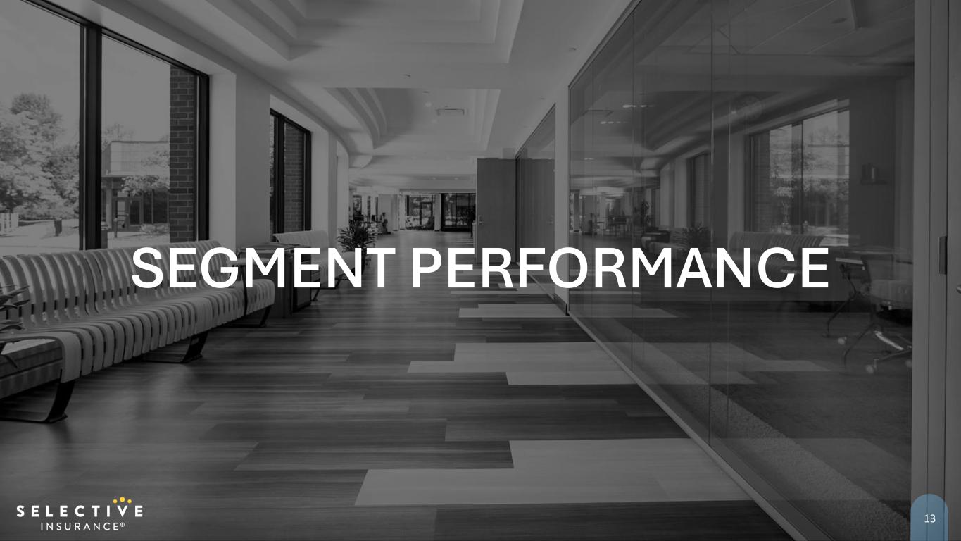 Path for Profitable Growth *Subject to regulatory approval • Targeting 3% market share in existing footprint over the long-term • 12% share of wallet target with existing distribution partners • 25% agent market share target in existing markets • Additional long-term premium opportunity of ~$3 billion • Disciplined approach to geographic expansion • Added ten states to our Standard Commercial Lines footprint since 2017 • Introducing three additional states later in 2024 and three more in 2025* • Plan to write business in most of the contiguous U.S.; operating model will vary depending on the market Standard Commercial Lines Core Footprint prior to 2017 Expansion States since 2017 2024 Targeted Expansion States* Excess and Surplus Lines • Opportunistic, profitable growth strategy • Expansion of capabilities and products Standard Personal Lines • Transition to mass-affluent well underway • Focusing where we believe our strong coverage and servicing capabilities will be more competitive • Better aligns our organizational capabilities with a market where we believe we can succeed over the long term Standard Commercial Lines Footprint 11 2025 Targeted Expansion States*