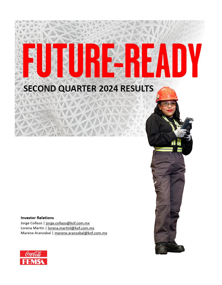 Mexico City, July 19, 2024, Coca-Cola FEMSA, S.A.B. de C.V. (BMV: KOFUBL, NYSE: KOF) (“Coca-Cola FEMSA”, “KOF” or the “Company”), the largest Coca-Cola franchise bottler in the world by sales volume, announces results for the second quarter of 2024.