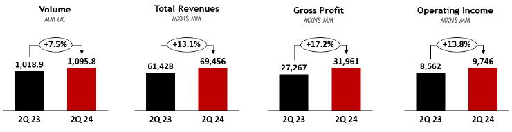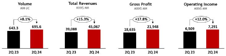 "As we close a positive first half of the year, I am encouraged by the progress we are making in implementing a long-term sustainable growth model. For the second quarter, we delivered solid volume growth in Mexico, Central America, and Brazil, achieving double-digit consolidated revenue and operating income growth. We also continued progressing towards becoming our customers’ preferred commercial platform, completing the rollout of Juntos+ version 4.0 in Mexico and Brazil, while beginning its implementation in Guatemala, Panama, and Colombia. This version features advanced analytics and a more user-friendly interface. Now more than half of our total customer base are digital buyers.