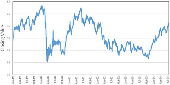 The following graph sets forth the historical performance of the common stock of Citigroup Inc. based on the daily historical closing values from January 1, 2019 through July 18, 2024. We obtained the closing values below from Bloomberg L.P. (“Bloomberg”). We have not undertaken any independent review of, or made any due diligence inquiry with respect to, the information obtained from Bloomberg.