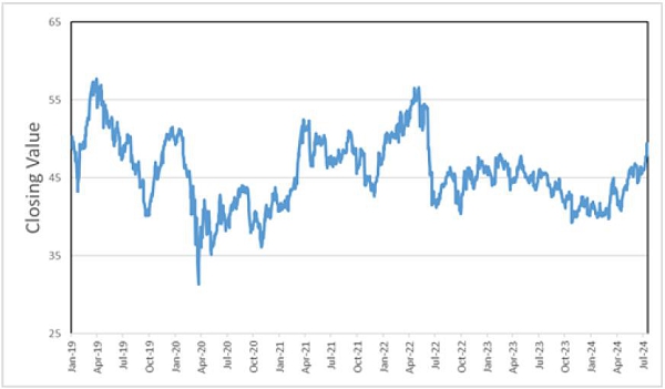 The following graph sets forth the historical performance of the common stock of Altria Group, Inc. based on the daily historical closing values from January 1, 2019 through July 18, 2024. We obtained the closing values below from Bloomberg L.P. (“Bloomberg”). We have not undertaken any independent review of, or made any due diligence inquiry with respect to, the information obtained from Bloomberg.