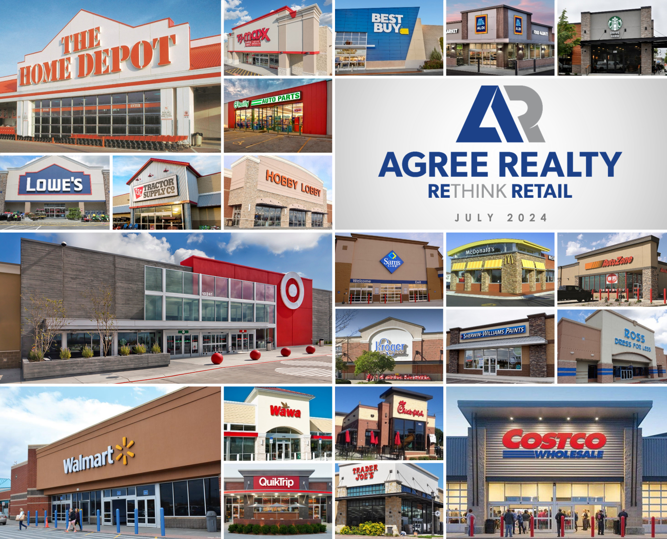 Royal Oak, MI, July 23, 2024 -- Agree Realty Corporation (NYSE: ADC) (the “Company”) today announced results for the quarter ended June 30, 2024. All per share amounts included herein are on a diluted per common share basis unless otherwise stated.
