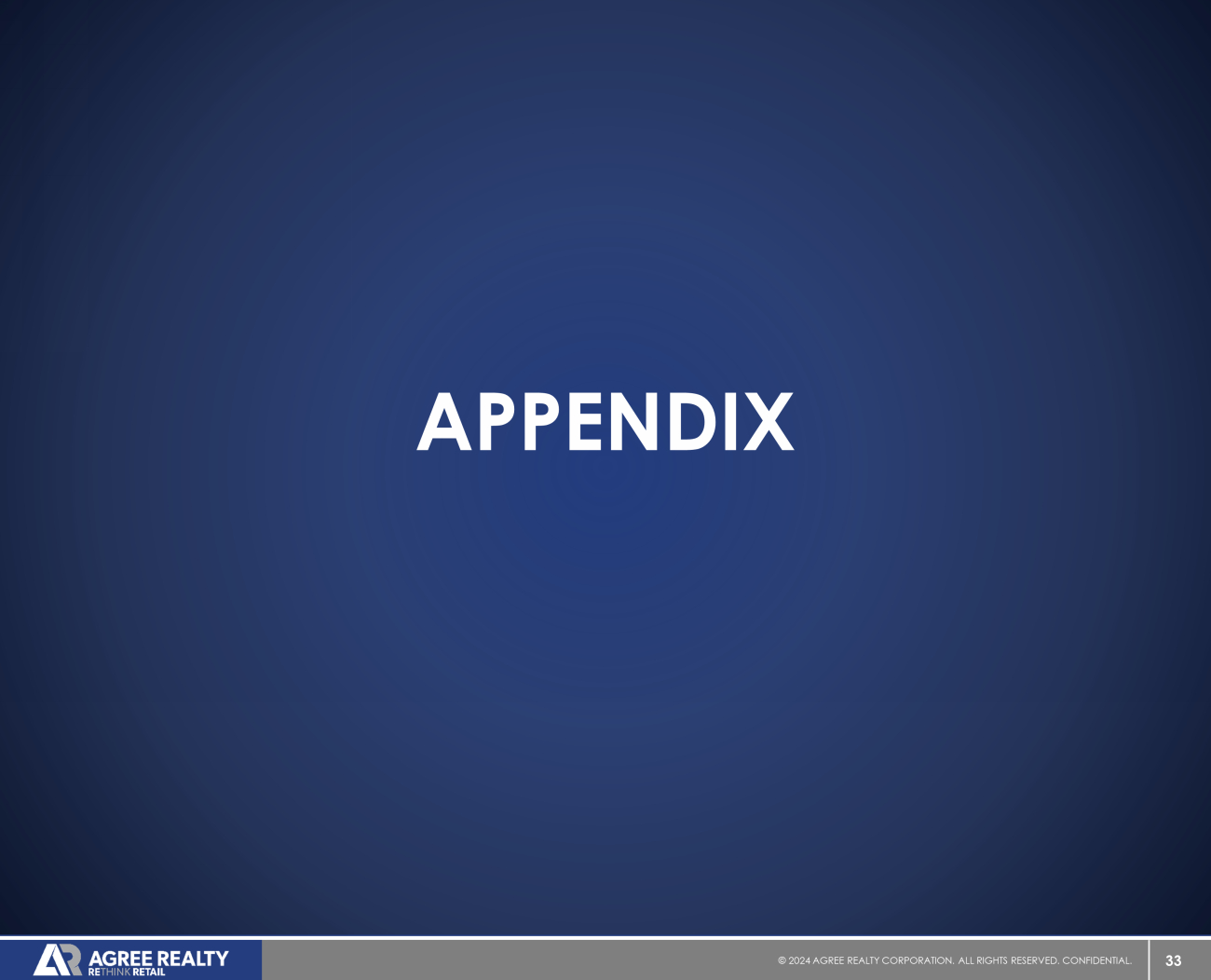33 © 20 24 AGREE REALTY CORPORATION . ALL RIGHTS RESERVED. CONFIDENTIAL. APPENDIX