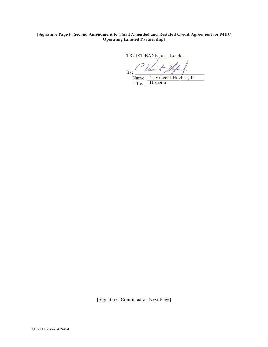 LEGAL02/44404794v4 [Signature Page to Second Amendment to Third Amended and Restated Credit Agreement for MHC Operating Limited Partnership] TRUIST BANK, as a Lender By: ____________________________ Name: _______________________ Title: ________________________ [Signatures Continued on Next Page] C. Vincent Hughes, Jr. Director