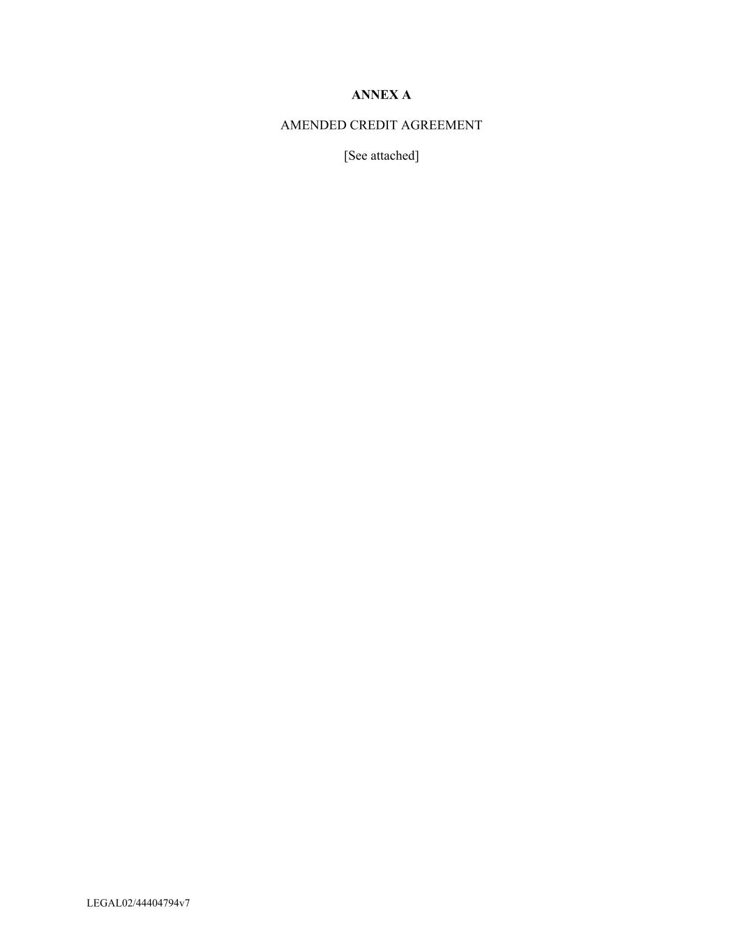 LEGAL02/44404794v7 ANNEX A AMENDED CREDIT AGREEMENT [See attached]