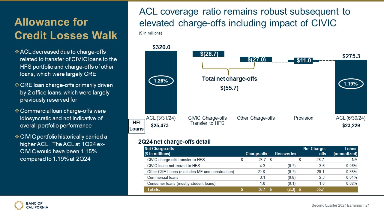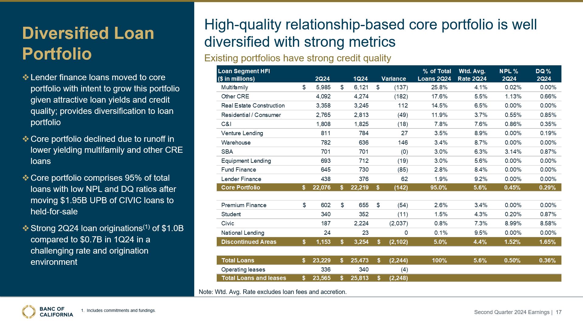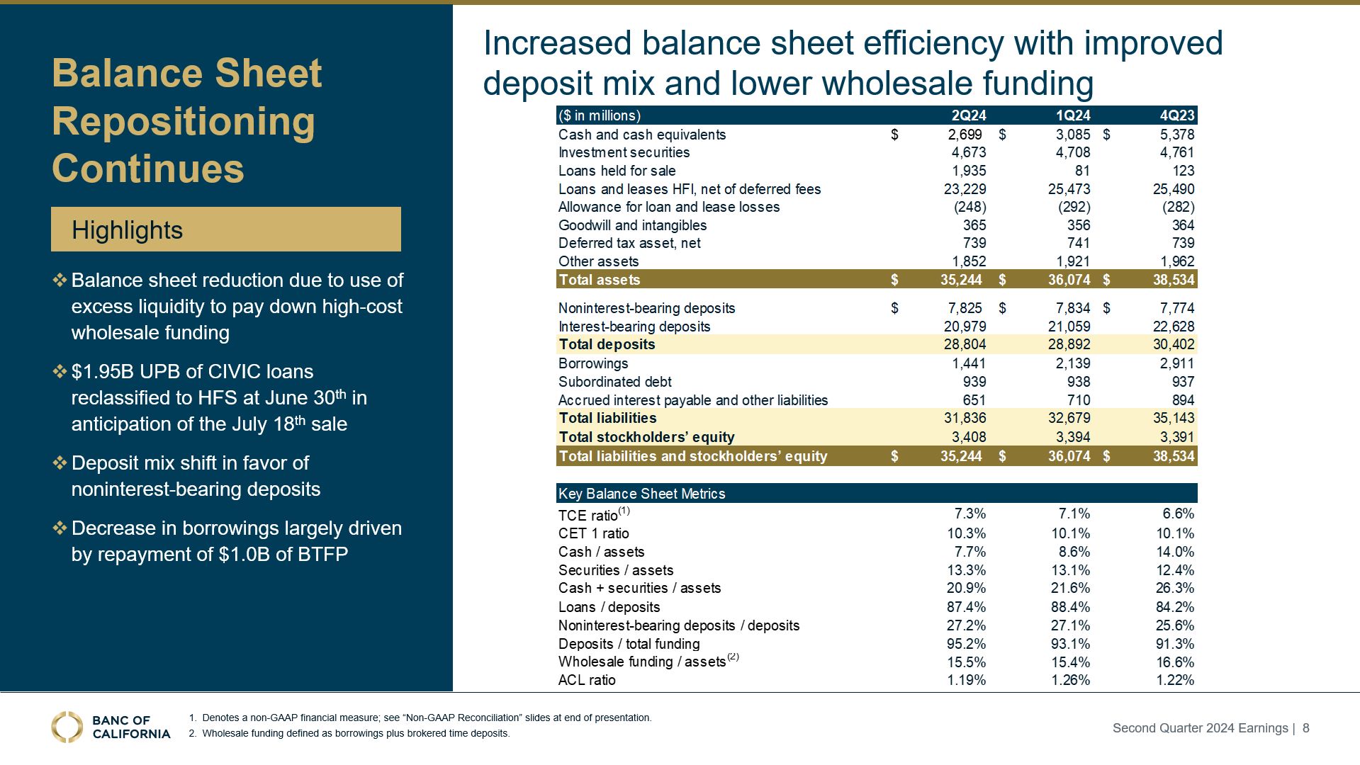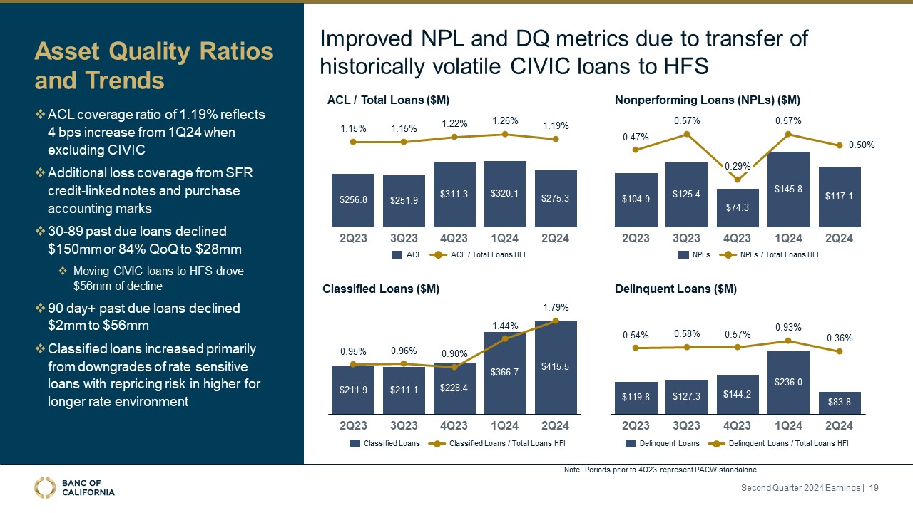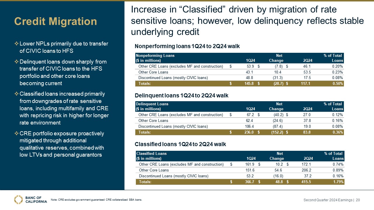 Transferred $1.95 billion of CIVIC business-purpose residential loans with a fair value of $1.91 billion to held for sale at June 30, 2024. Sale closed on July 18, 2024, resulting in immediate increases in