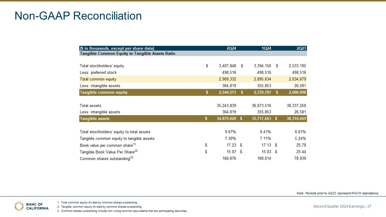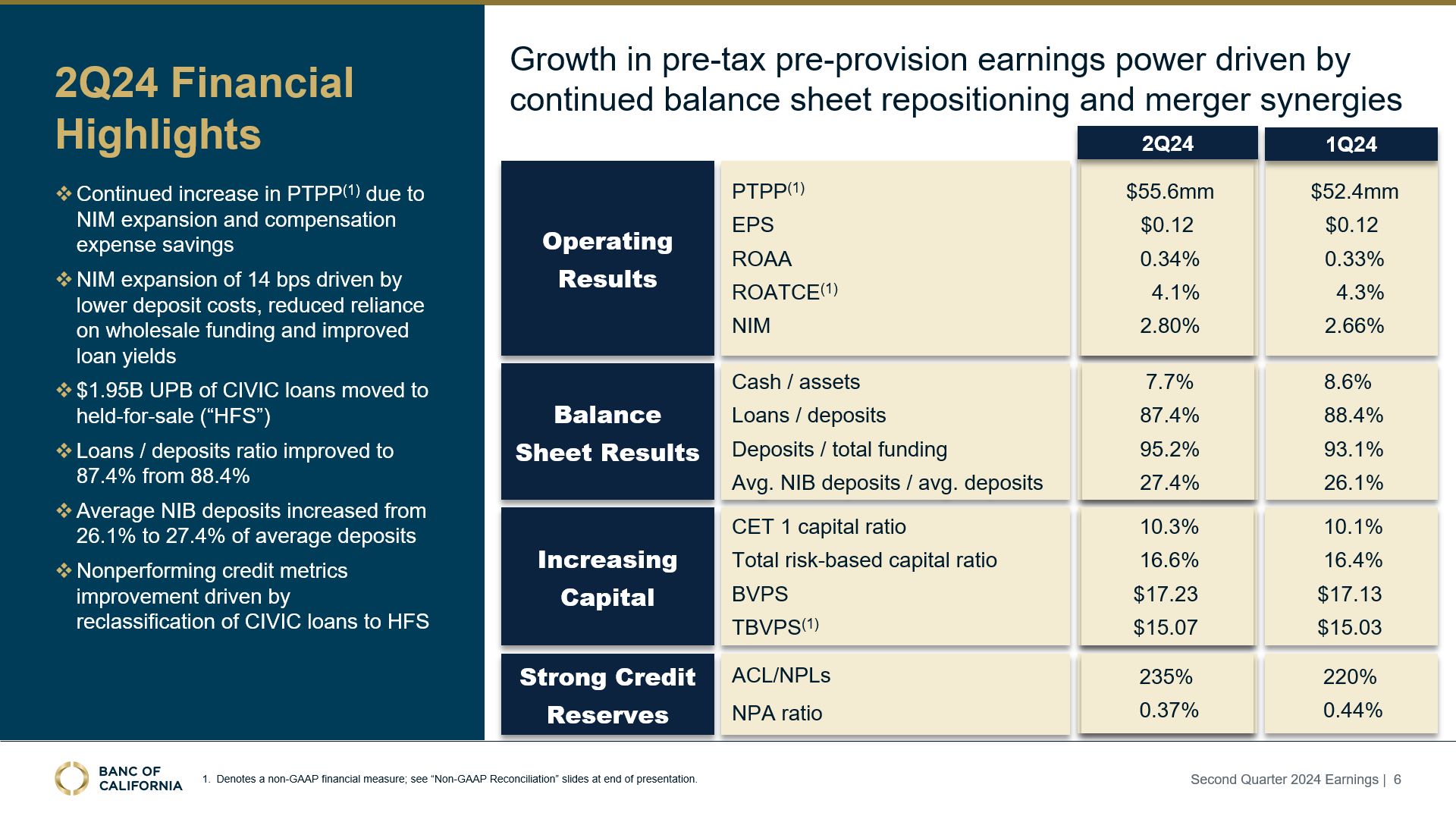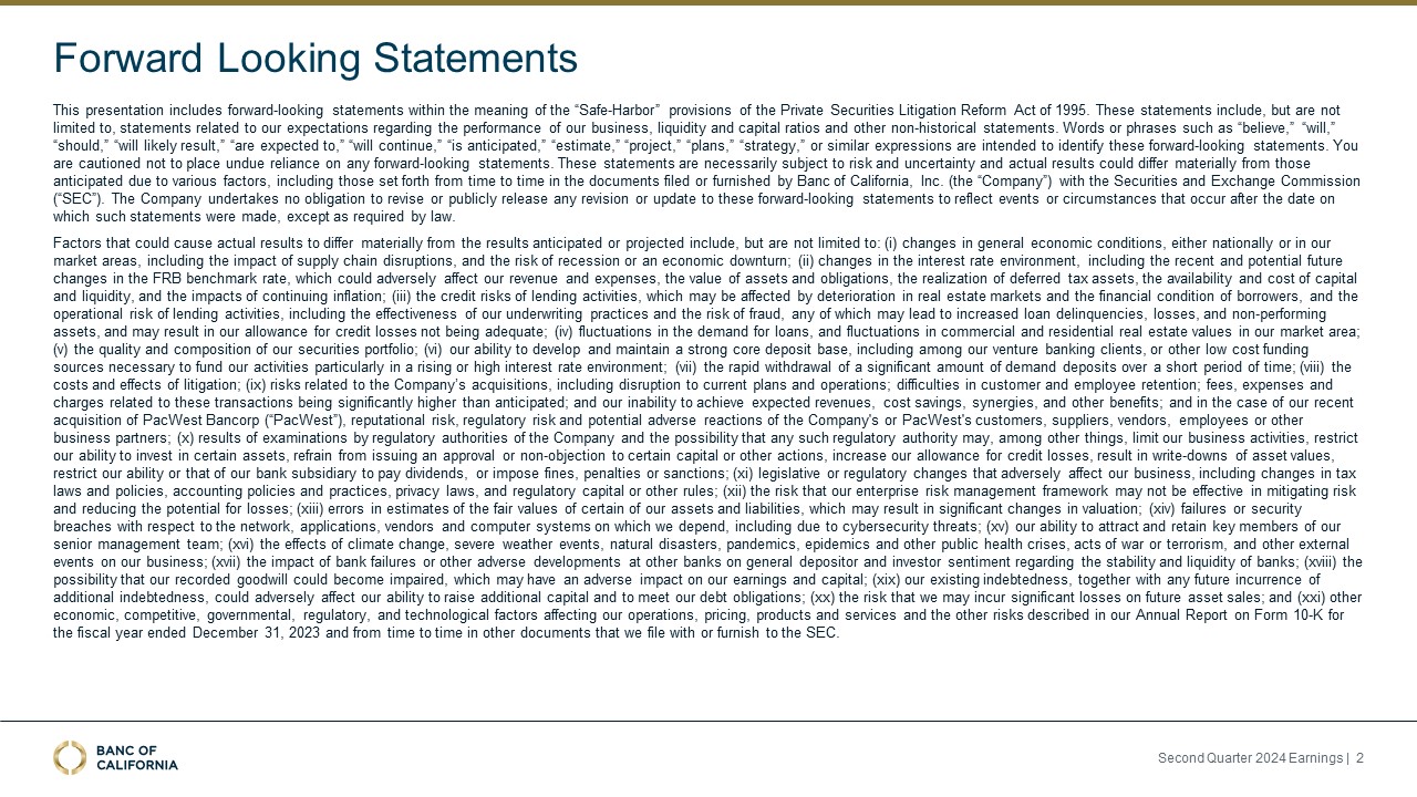 Banc of California, Inc. Earnings Conference Call Presentation Materials.