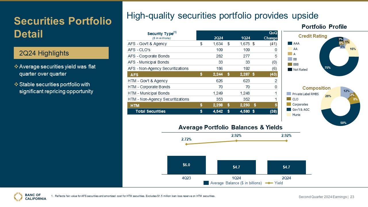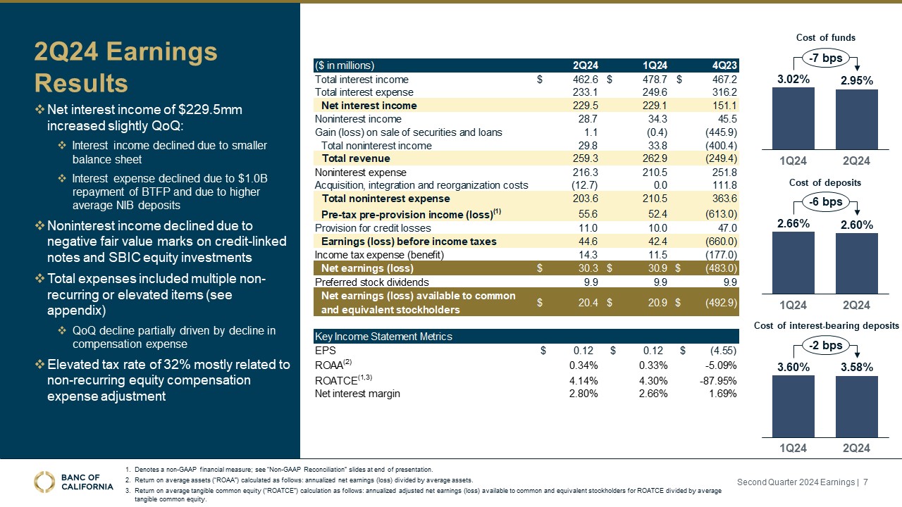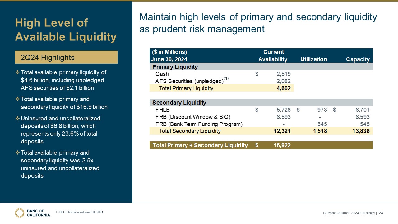 Banc of California, Inc. Press Release dated July 23, 2024.