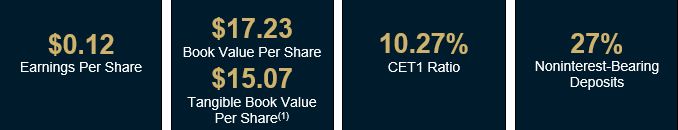 Book value per share increased to $17.23 and tangible book value per share(1)