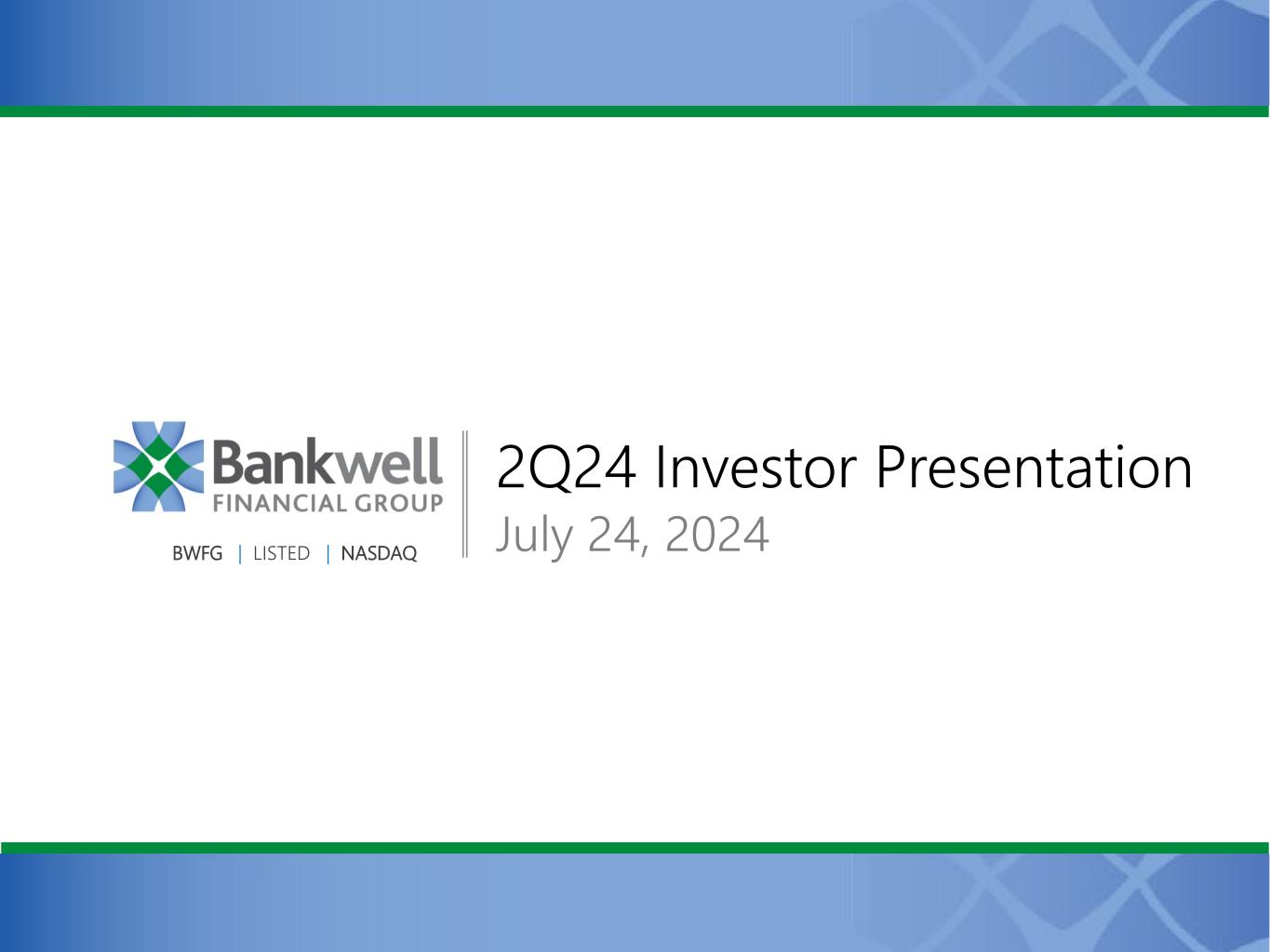 BWFG | LISTED | NASDAQ 2Q24 Investor Presentation July 24, 2024