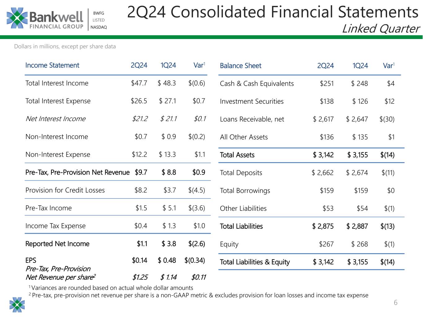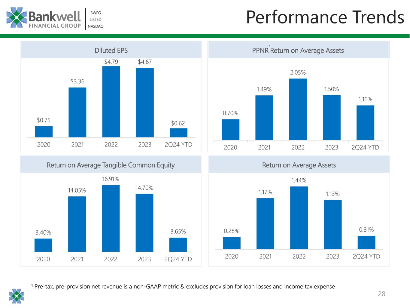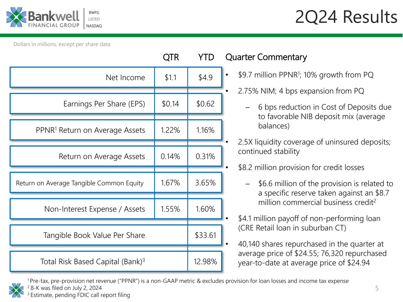 •PPNR was $9.7 million and PPNR return on average assets was 1.22% for the quarter ended June 30, 2024.