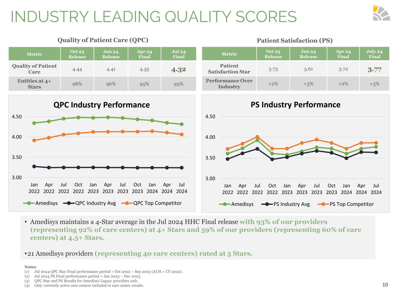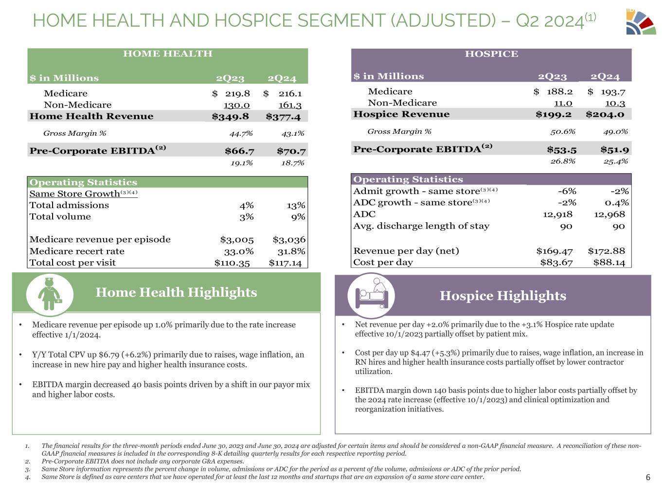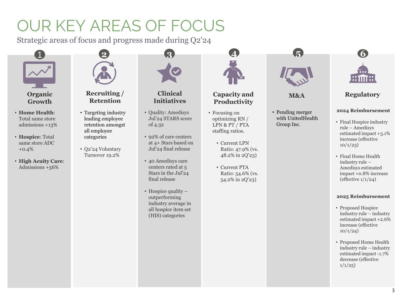The supplemental slides provided in connection with the second quarter 2024 earnings release can be found on the Investor Relations page of our website. In light of the pending merger of the Company with UnitedHealth Group Incorporated, Amedisys will not conduct a quarterly earnings call to discuss the second quarter results.